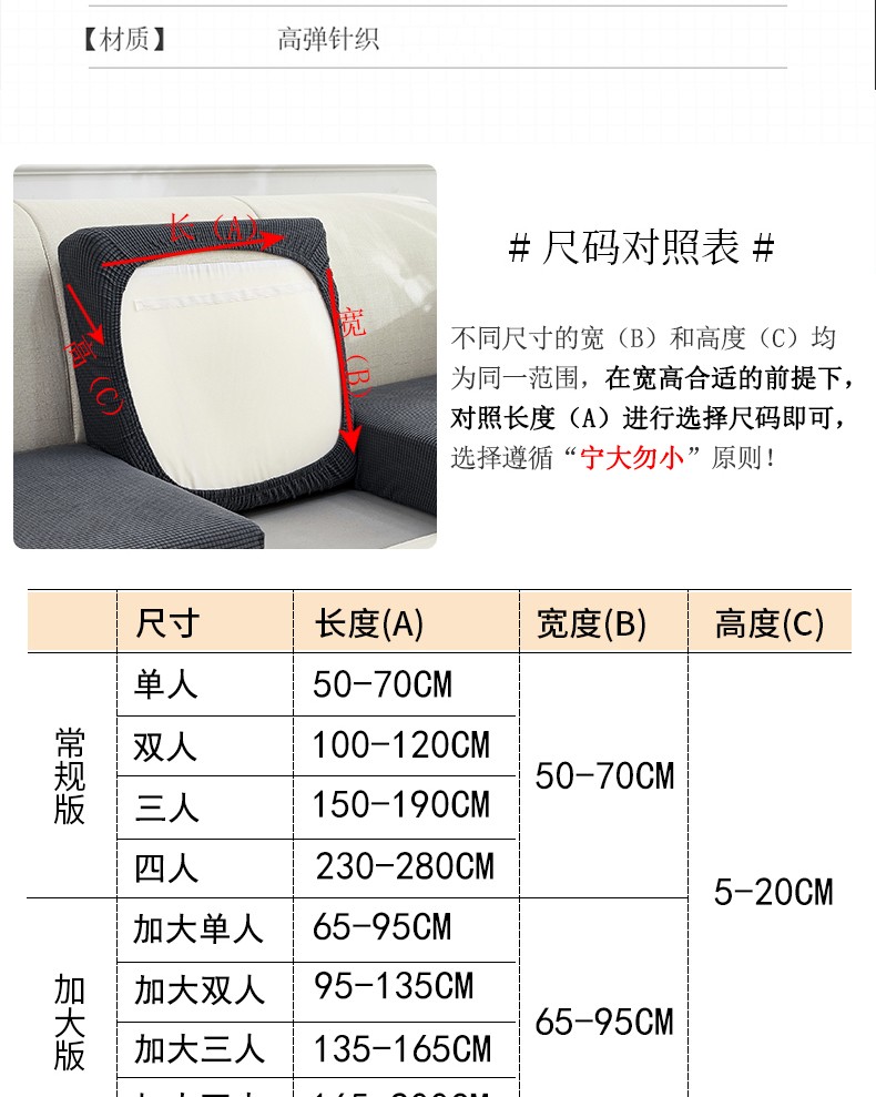 クッションカバー万能ソファークッションセット風呂キャップ式厚い貴妃クッション四季通用ソファ笠単ペア保護カバー西湖藍拡大版ツイン幅65~95 cm*長95~135 cm