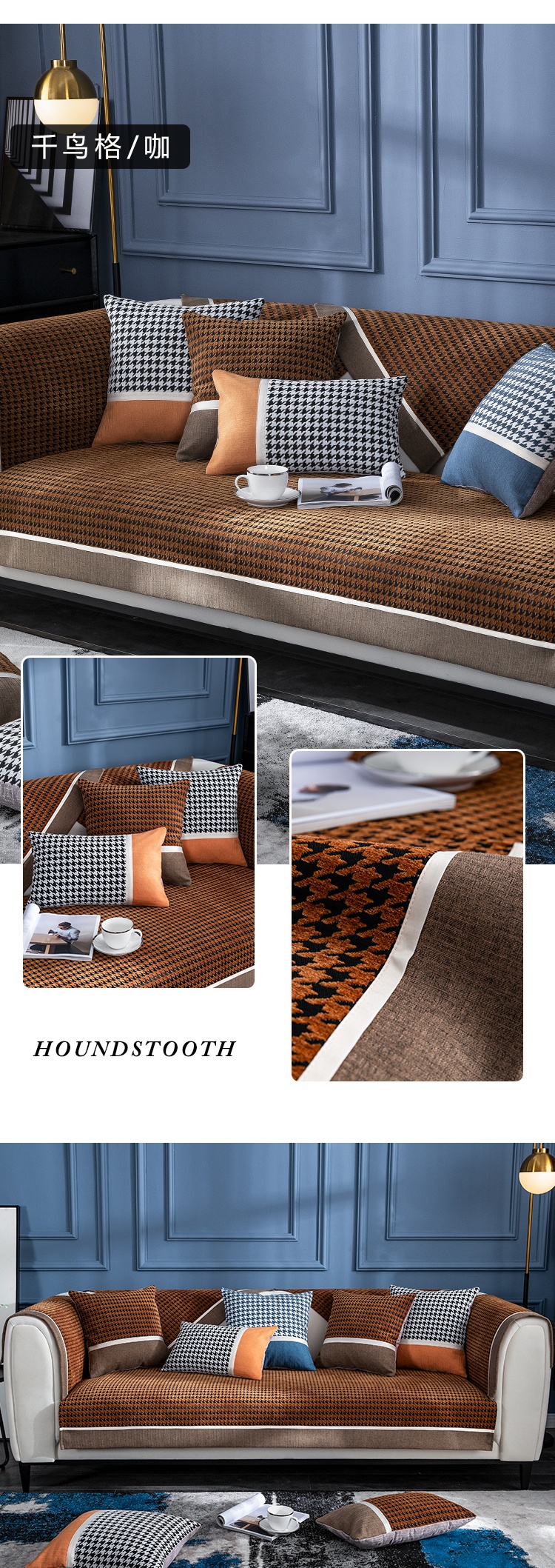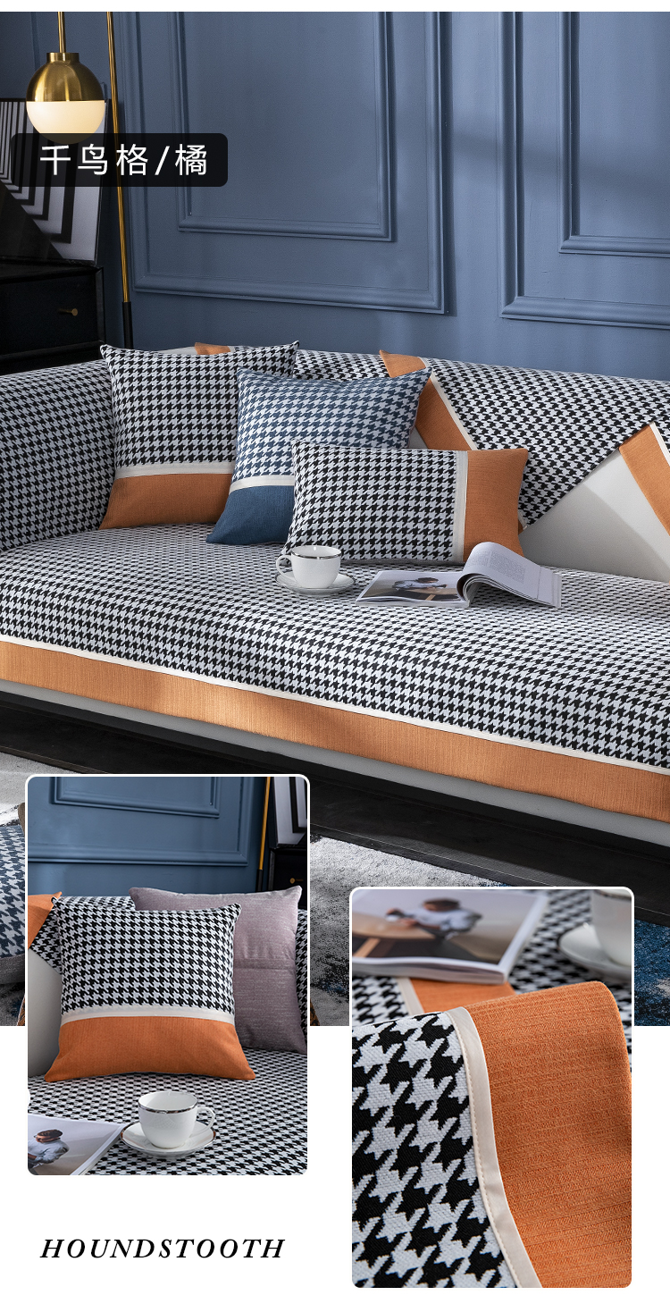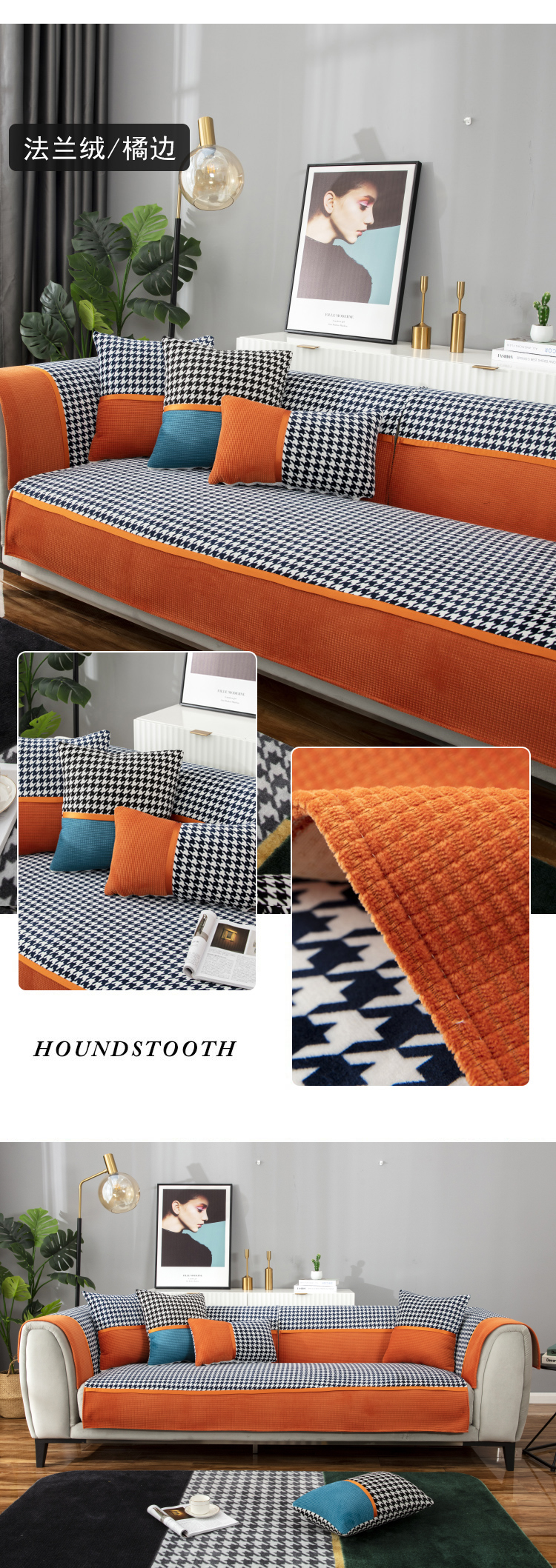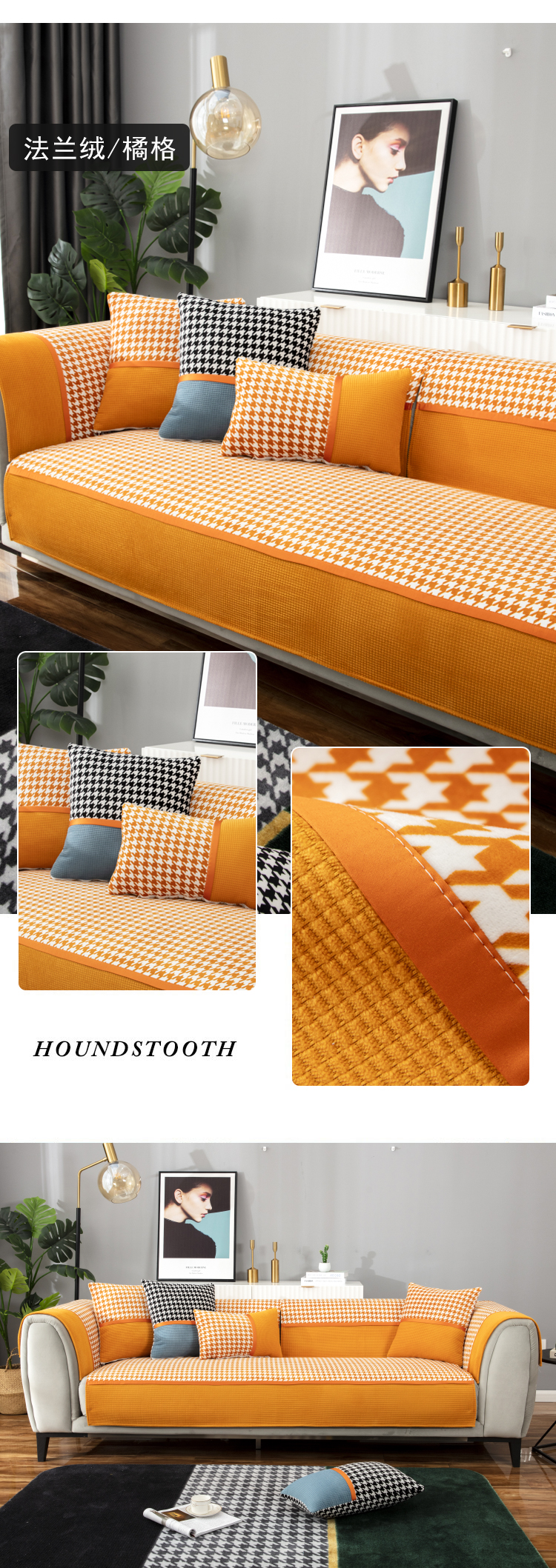 ランリー坊シェニールソファクッションセット北欧経典千鳥格夏季通用滑り止め簡単で贅沢なソファーカバーカバーカバーカバーの貴妃位は千鳥格オレンジ色をカスタマイズできます。