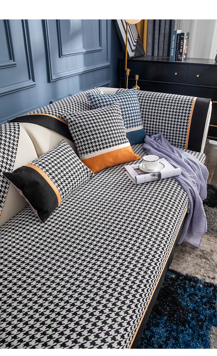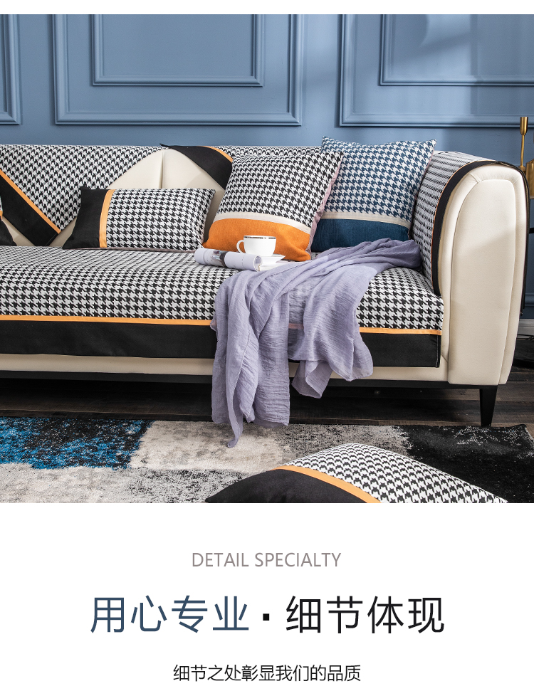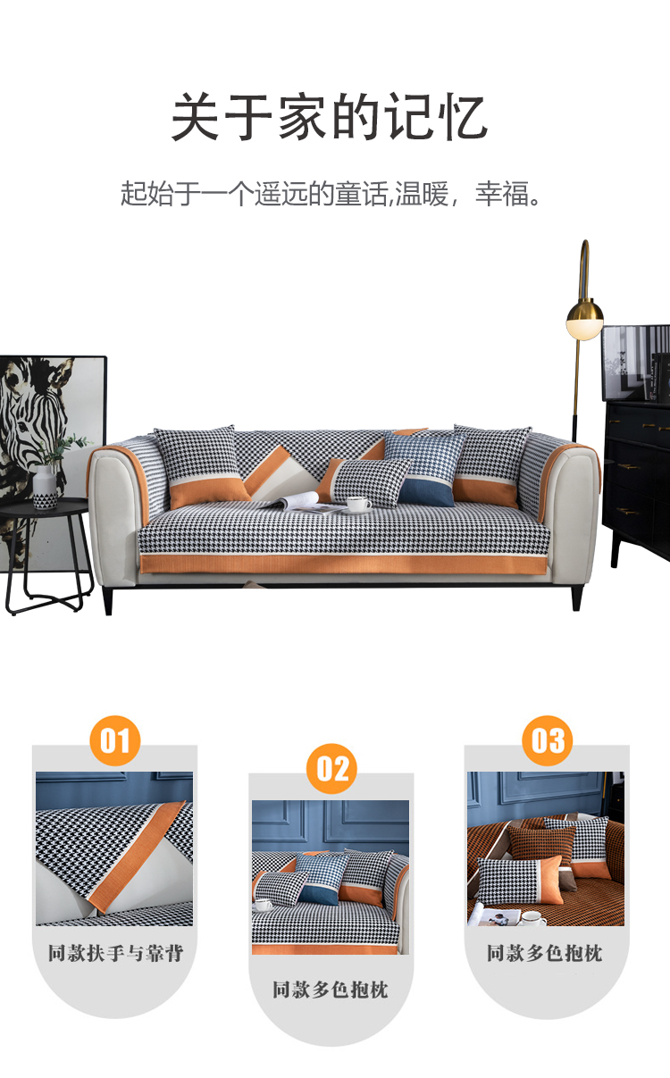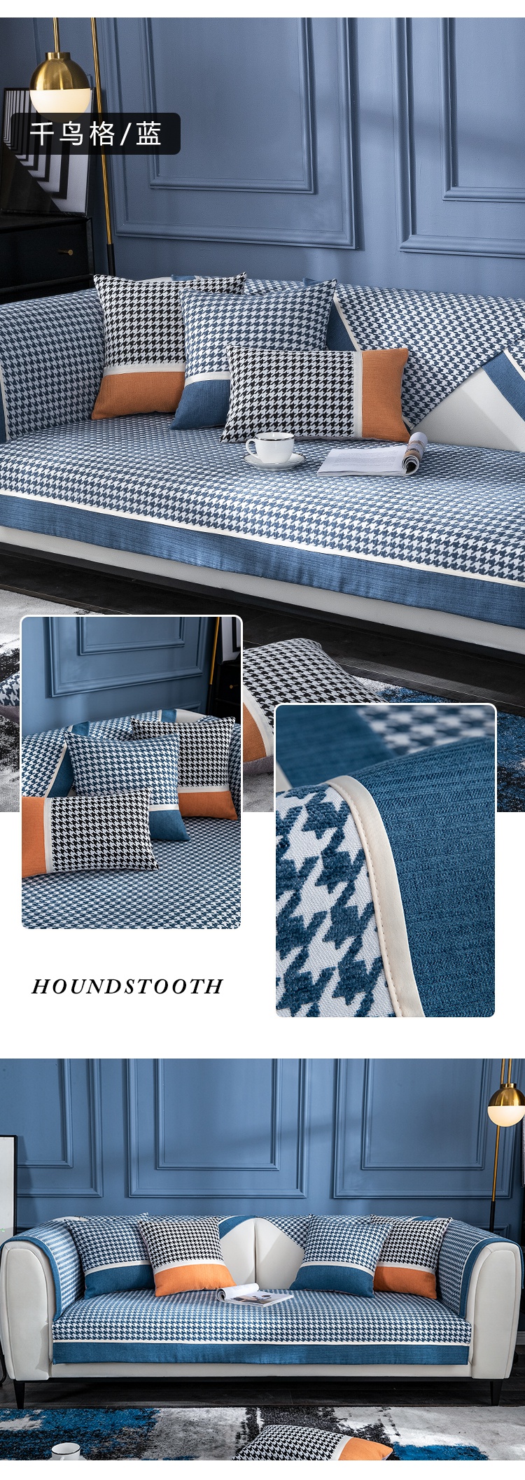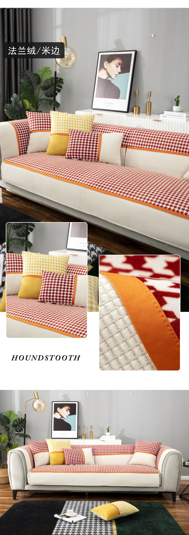 ランリー坊シェニールソファクッションセット北欧経典千鳥格夏季通用滑り止め簡単で贅沢なソファーカバーカバーカバーカバーの貴妃位は千鳥格オレンジ色をカスタマイズできます。