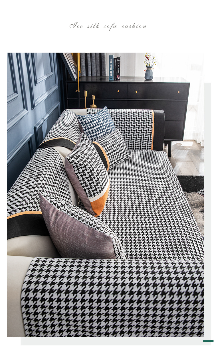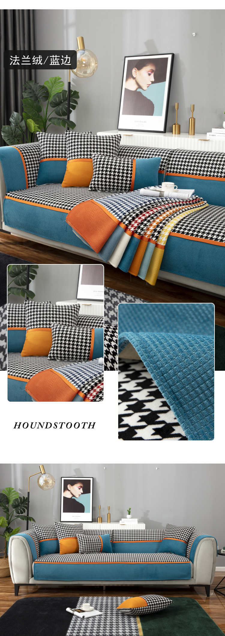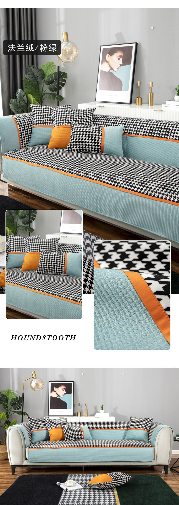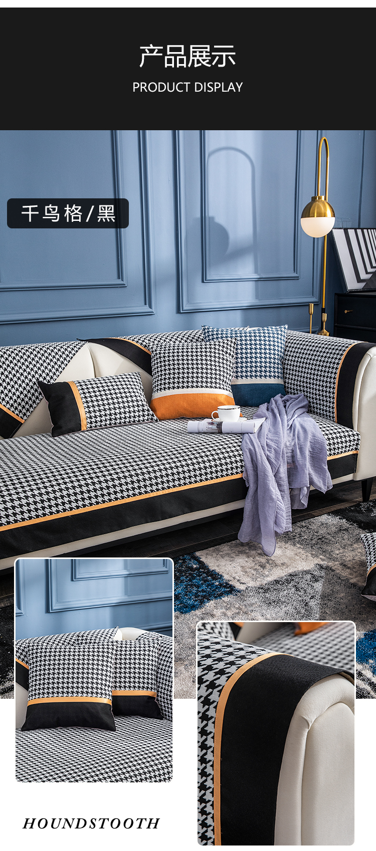 ランリー坊シェニールソファクッションセット北欧経典千鳥格夏季通用滑り止め簡単で贅沢なソファーカバーカバーカバーカバーの貴妃位は千鳥格オレンジ色をカスタマイズできます。