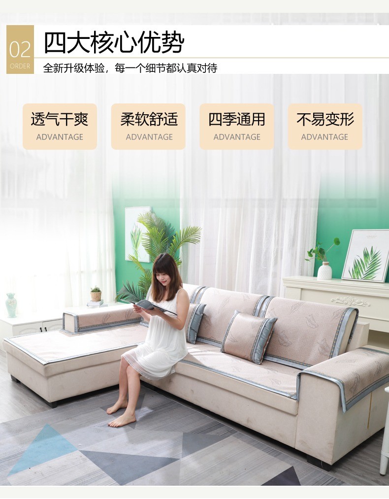 欣雨禾皮ソファマット本当に滑り止めクッションセット夏布芸简约現代四季通用の貴妃セットソファカバーオーダーメイド帝欧风情青スカートセットC単座+ダブルシート+貴妃パッド+手すりクッション九つセット