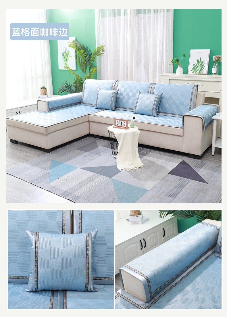 商品名称夏のアイスシートを取り付け、夏の滑り止めソファを敷いてください。クッションカバーリビングの四季通用カバークッションをカバーします。貴妃が注文した青いチェックのコーヒーのそばに50*100 cmあります。