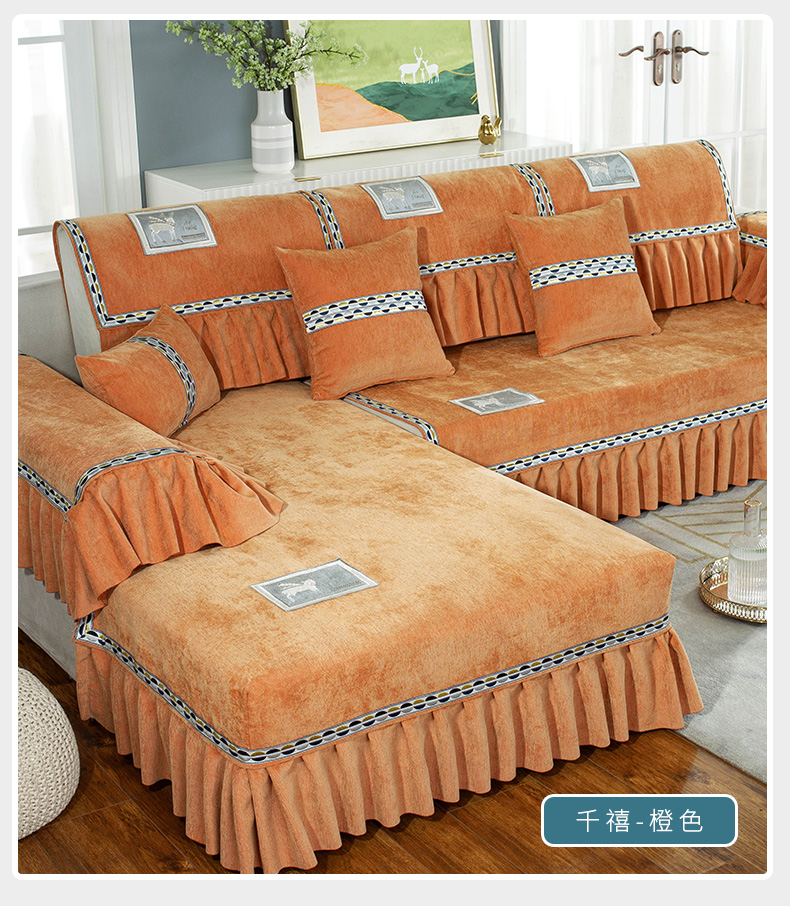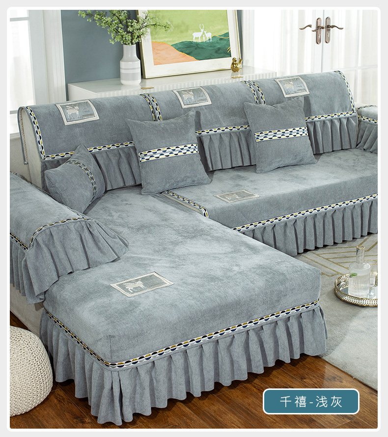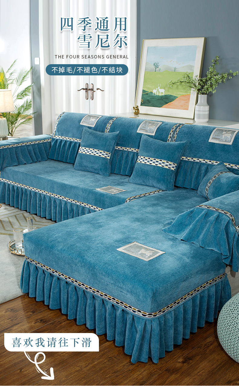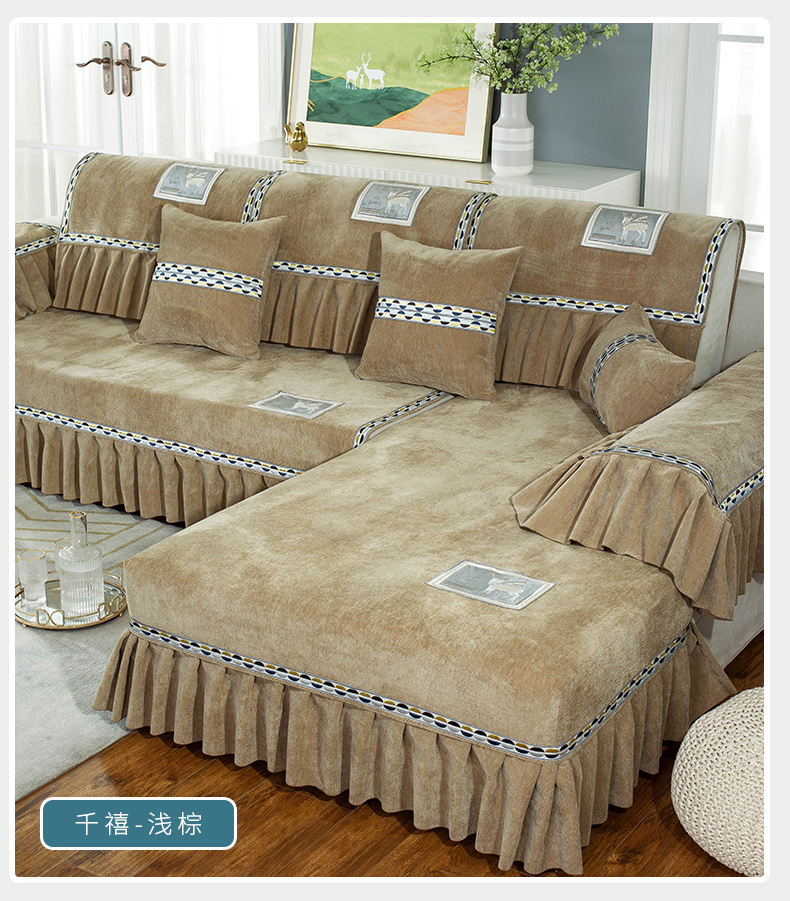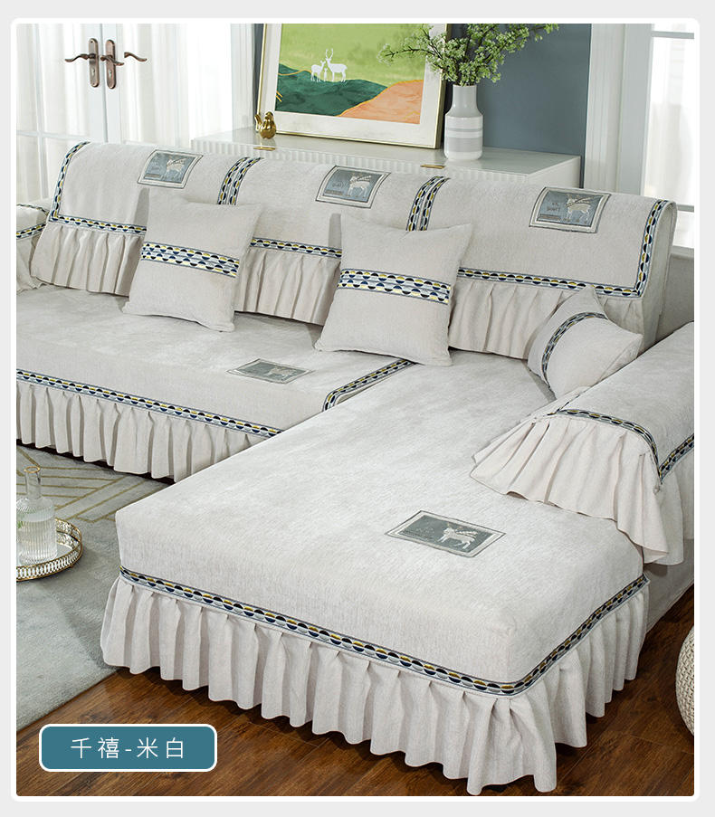 蘭麗坊ソファマット雪尼爾ファブリック北欧ソファカバー2021年新型四季通用滑り止め春季欧式軽贅沢ソファカバー翻り窓貴妃位は千禧-米白オーダーメイドサービスをサポートします。