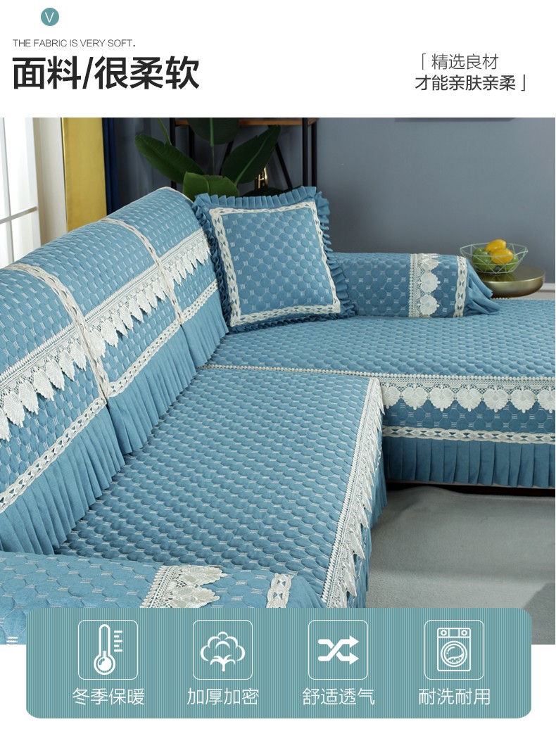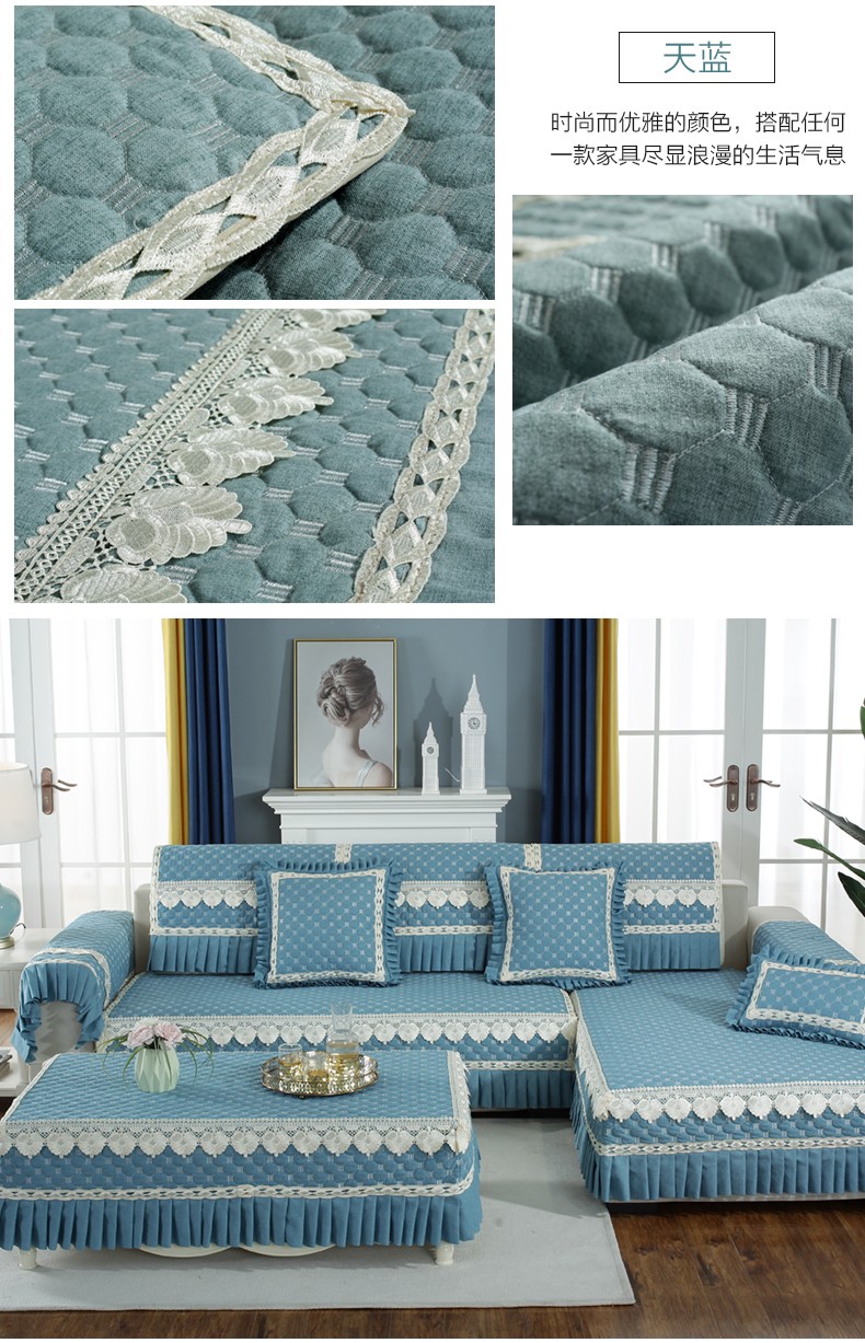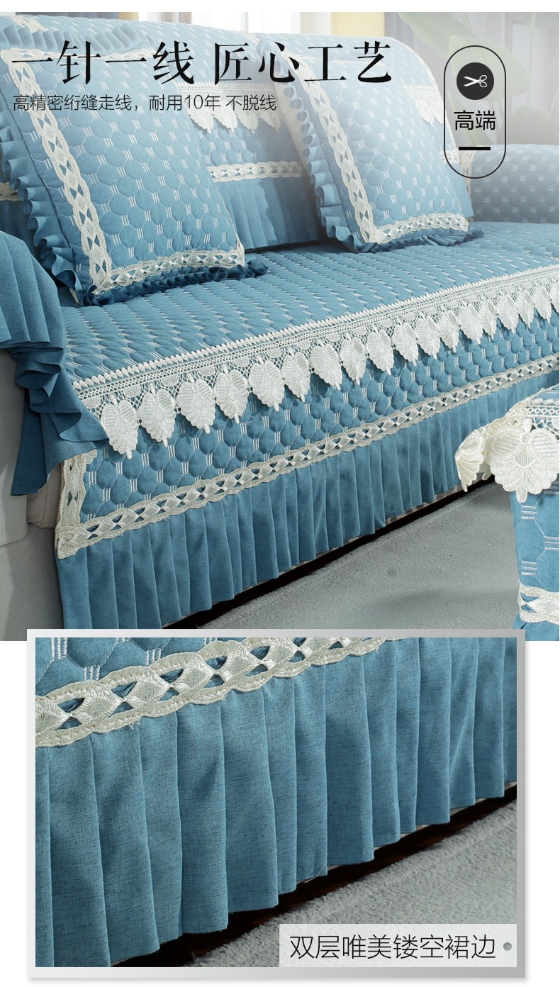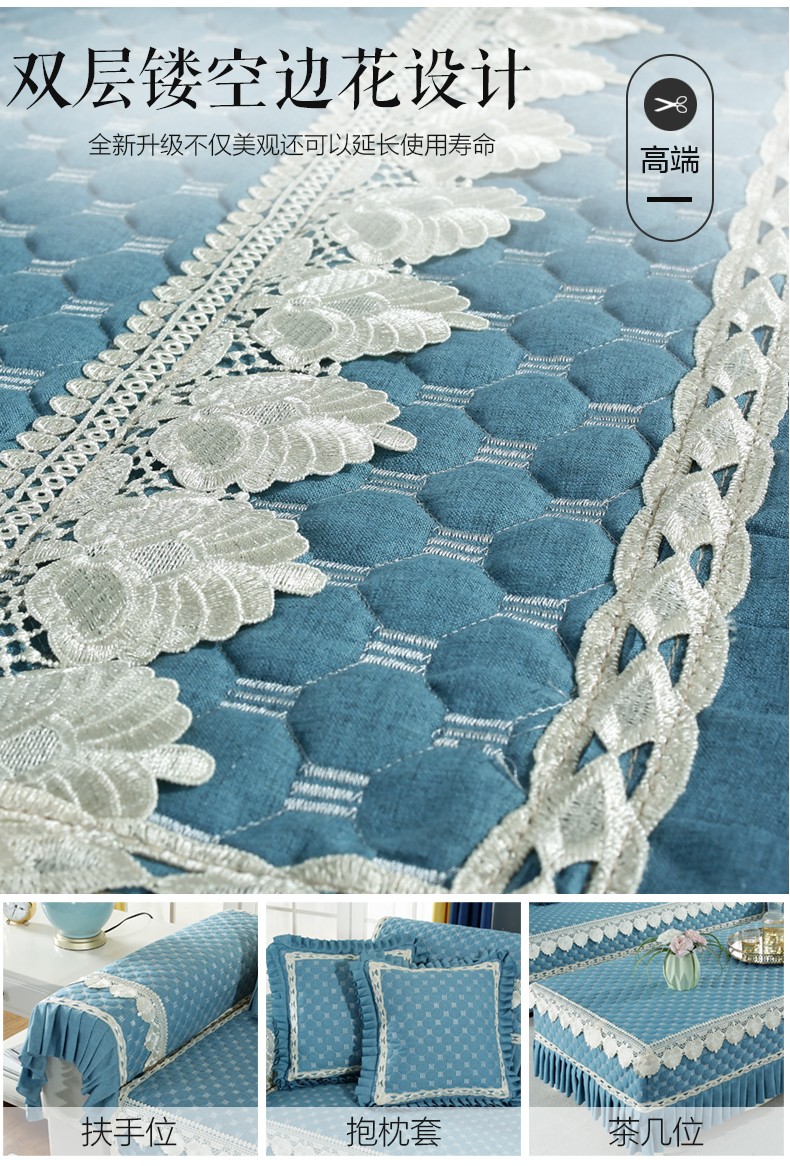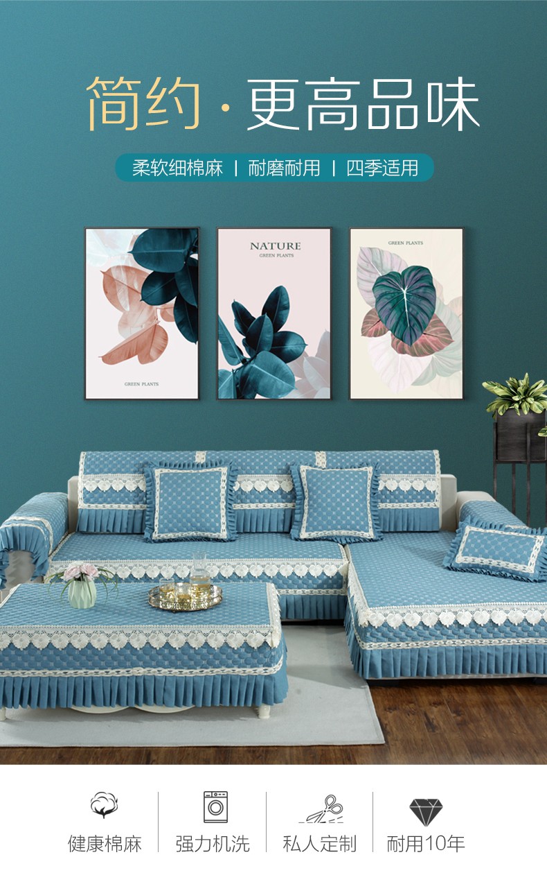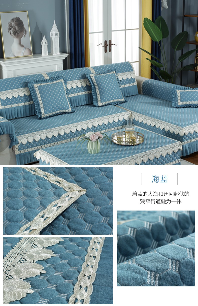 戴蒂ソファマット四季通用オーダーメード皮木布芸ソファカバー座布団貴妃全小包万能滑り止め北欧シンプル-海藍片70*70 cm+17裾