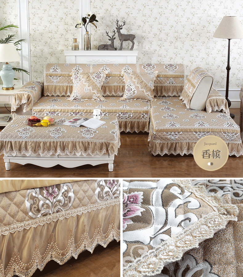 戴蒂北ヨーロッパ式ソファマット四季通用のソファーカバー全カバー万能カバーカバー付き滑り止めクッション簡単に約束されたセックスサロン-シャンパン色オーダーメイド専門写真(カスタマーサービスに連絡する必要があります)