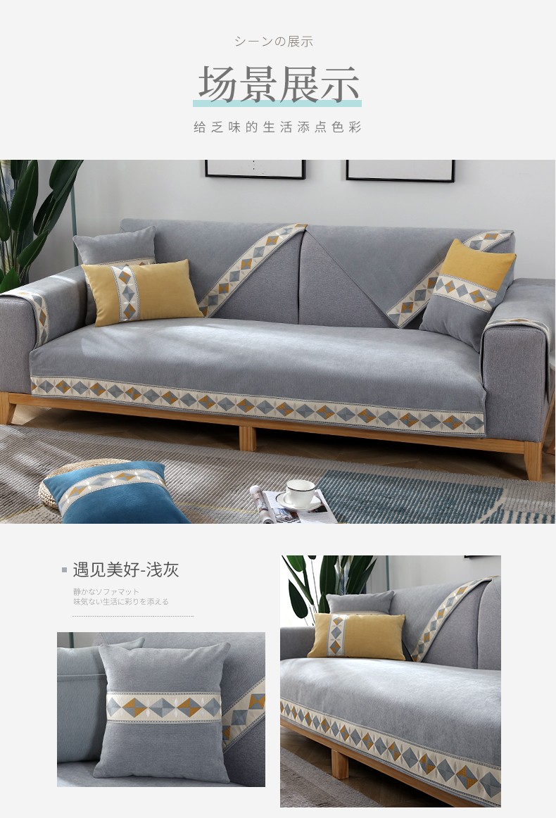 木儿の家のソファマットセット滑り止めソファタオル全カバーはオーダーメイドソファマットの布芸をサポートします。四季通用y出会いがすばらしいです。薄い灰色(シェニール)90 cm*90 cm一枚(オーダーメイドはカスタマーサービスに連絡してください。)