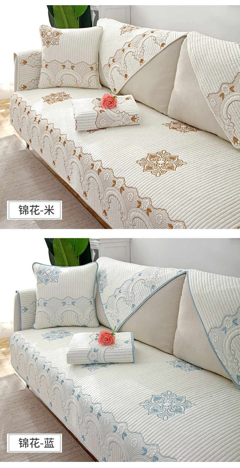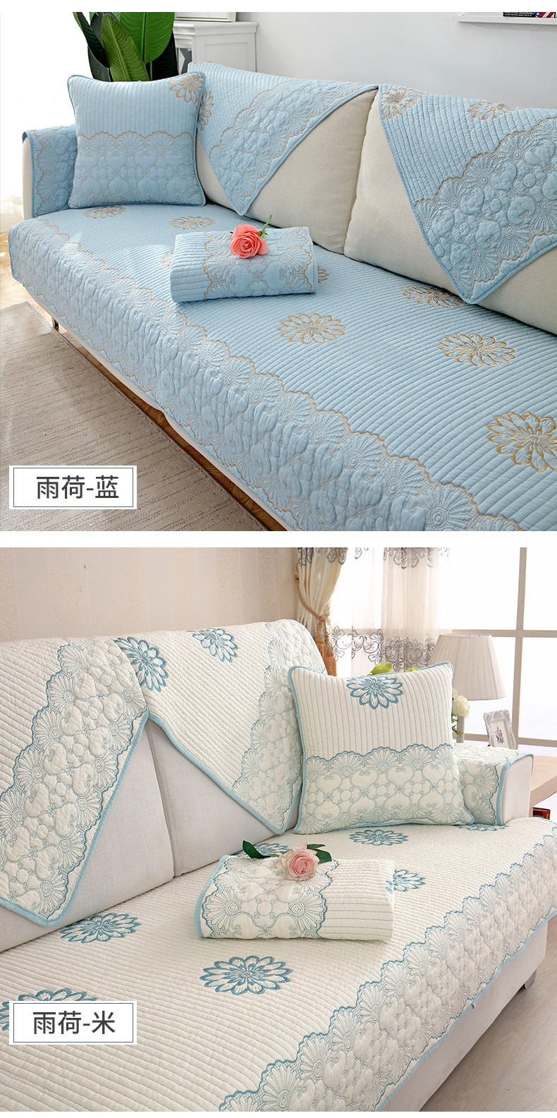 ペレスの両面刺繍ソファマット清新田園純綿滑り止めクッション全カバーソファーカバー全カバー貴妃セットソファタオルカバーZR雨荷-青【正反対全綿】70*70 cm【写真価格ブランド見積】