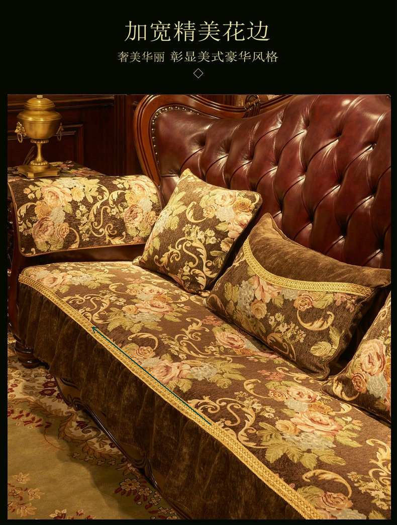 宝躍アメリカ式ソファマット滑り止め四季通用布芸復古田舎風豪華でシンプルな欧風ソファカバー123人セットの貴妃フルバッグオーダーメイドアメリカン田舎/レース/コーヒー色【75 cm+20 cm裾】*210 cm