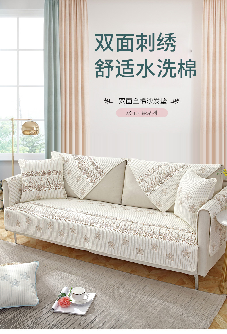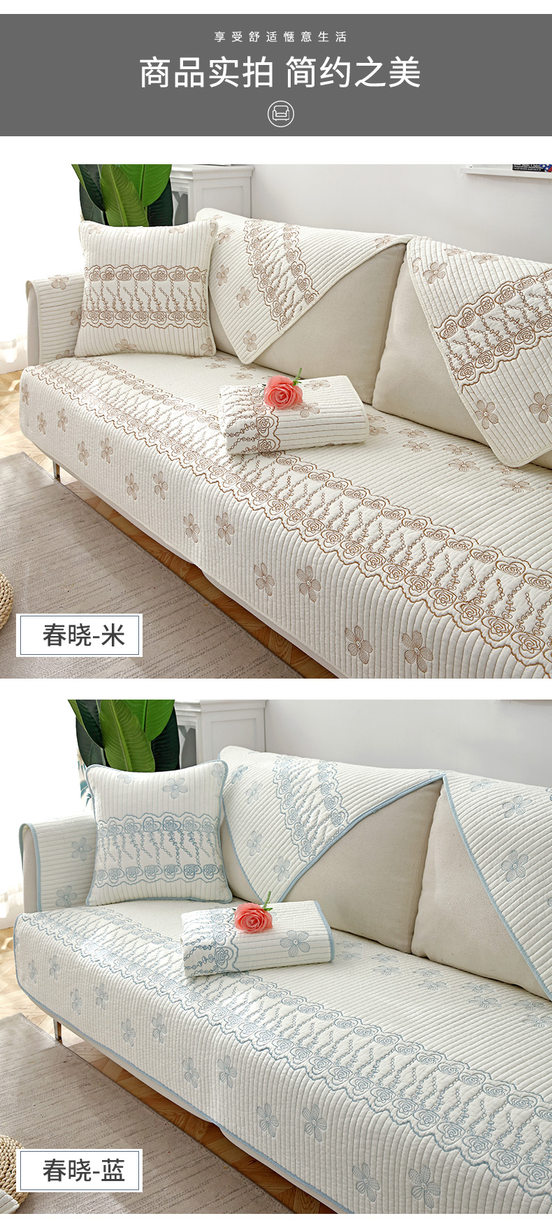ペレスの両面刺繍ソファマット清新田園純綿滑り止めクッション全カバーソファカバー全カバー貴妃セットソファタオルカバーZR錦花米【表と裏の全綿】110*210 cm