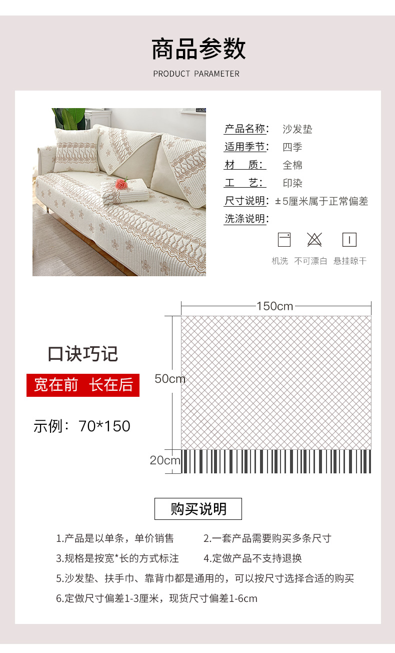 蘭麗坊の全綿のソファマット四季通用の布芸滑り止めの木のクッション現代皮のソファーカバーの背もたれカバーのクッションの貴妃の席はレースのフリンジをカスタマイズできます。柔らかいおしろいの幅は70*長さ90 cmです。