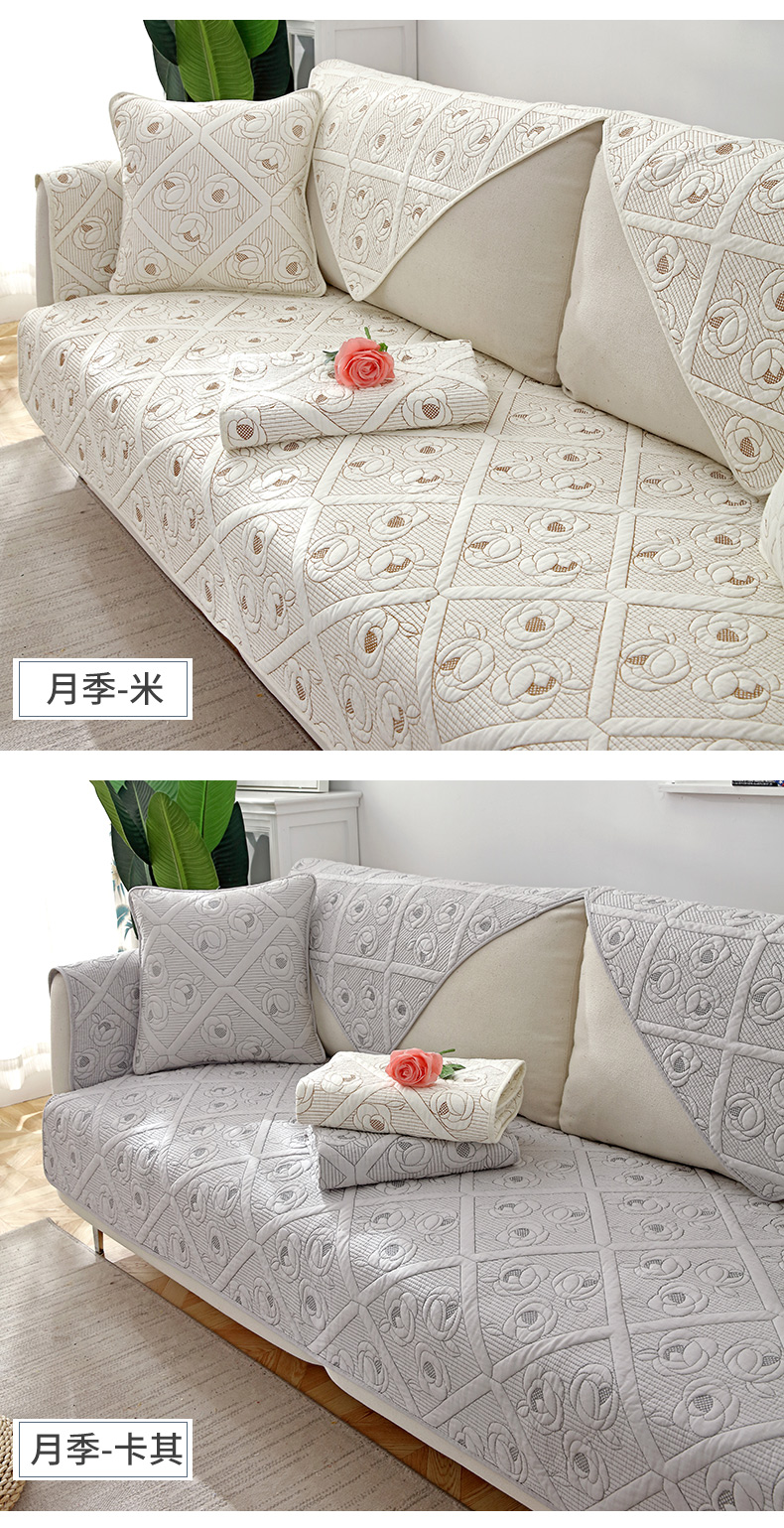 ペレスの両面刺繍ソファマット清新田園純綿滑り止めクッション全カバーソファーカバー全カバー貴妃セットソファタオルカバーZR月季米【正反対全綿】90*180 cm【写真価格ブランド見積】
