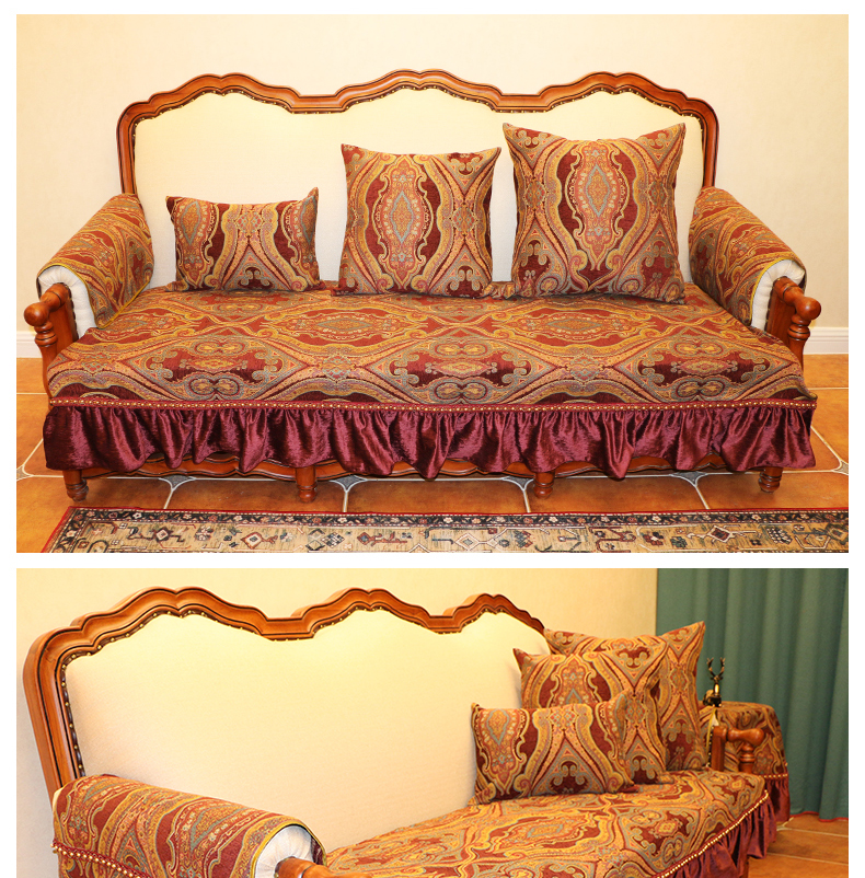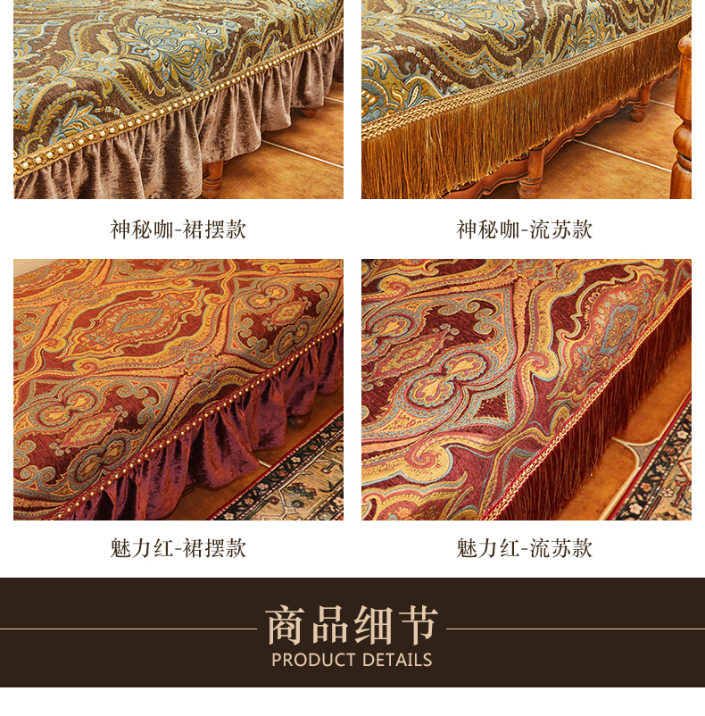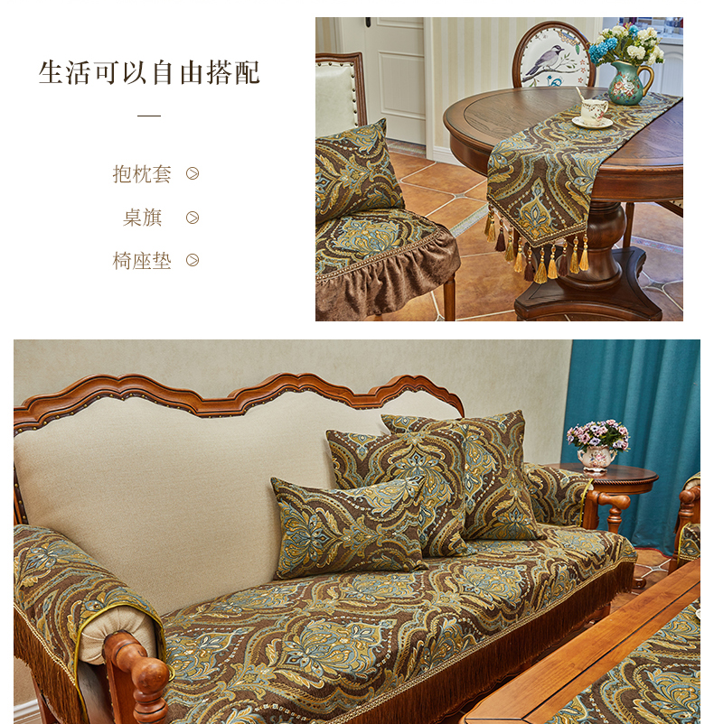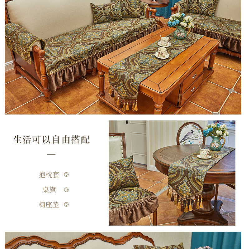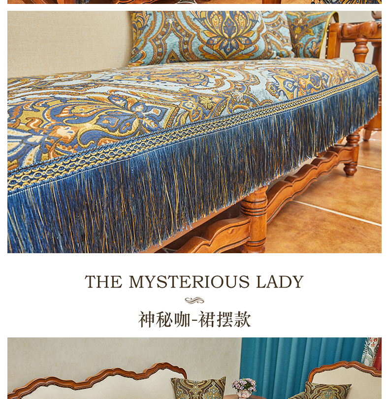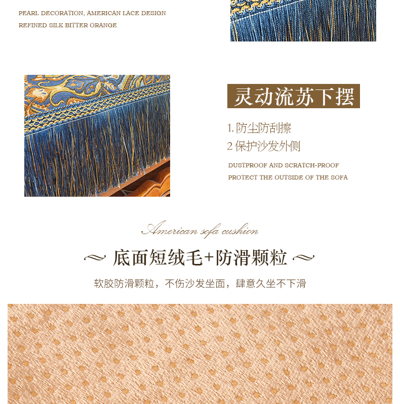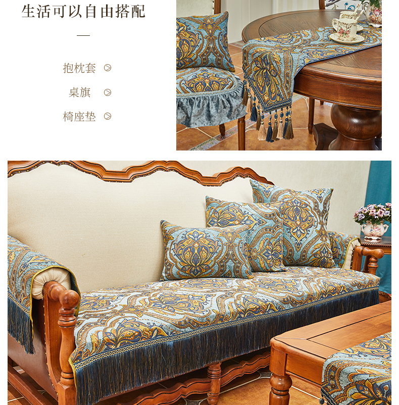ブルーオーク欧式軽い贅沢なソファマット雪尼爾厚い貴妃简欧123人セット四季通用高級高級滑り止めアメリカンソファカバー深い青-フリンジタイプのソファマット90*75