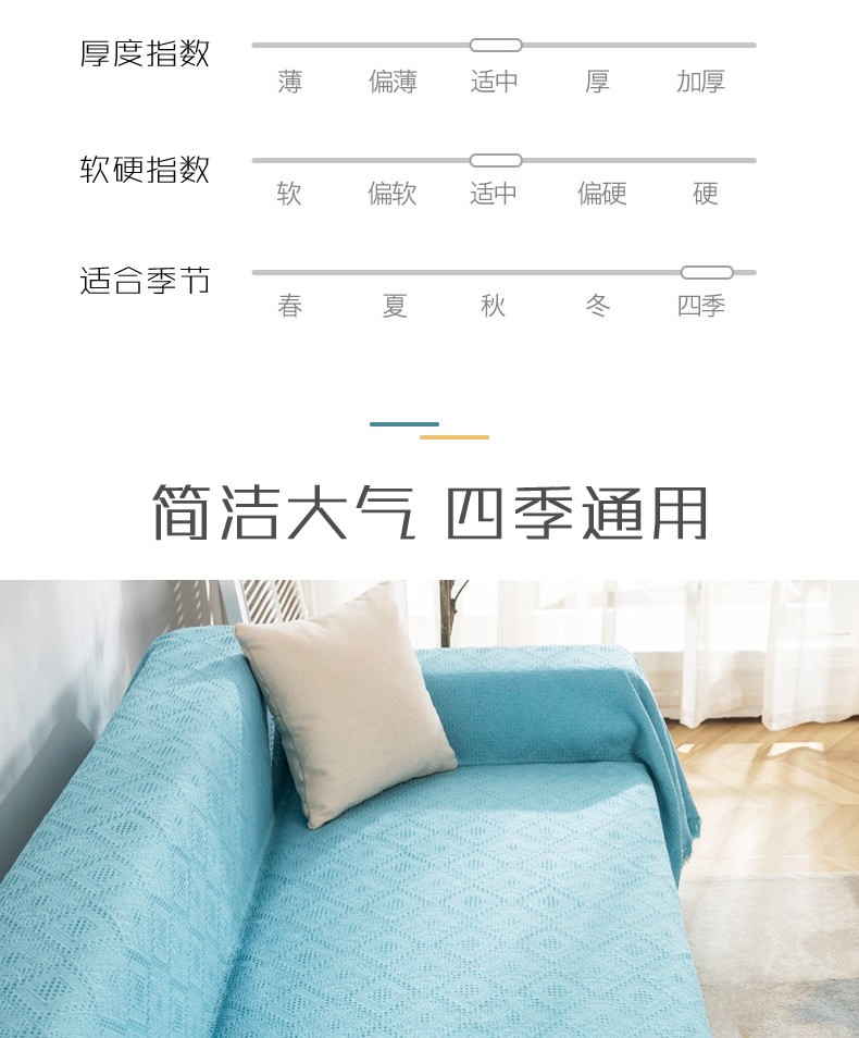 一生ソファタオルカバーソファクッション四季の毛布と木綿糸布芸ソファーカバー全カバー北欧クッション三人セットソファ貴妃式通用純色シェニール永久不変-浅灰180*130 cm