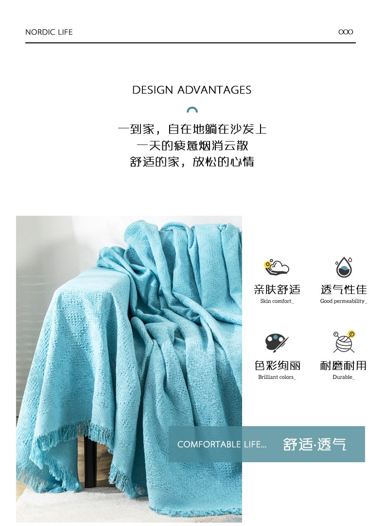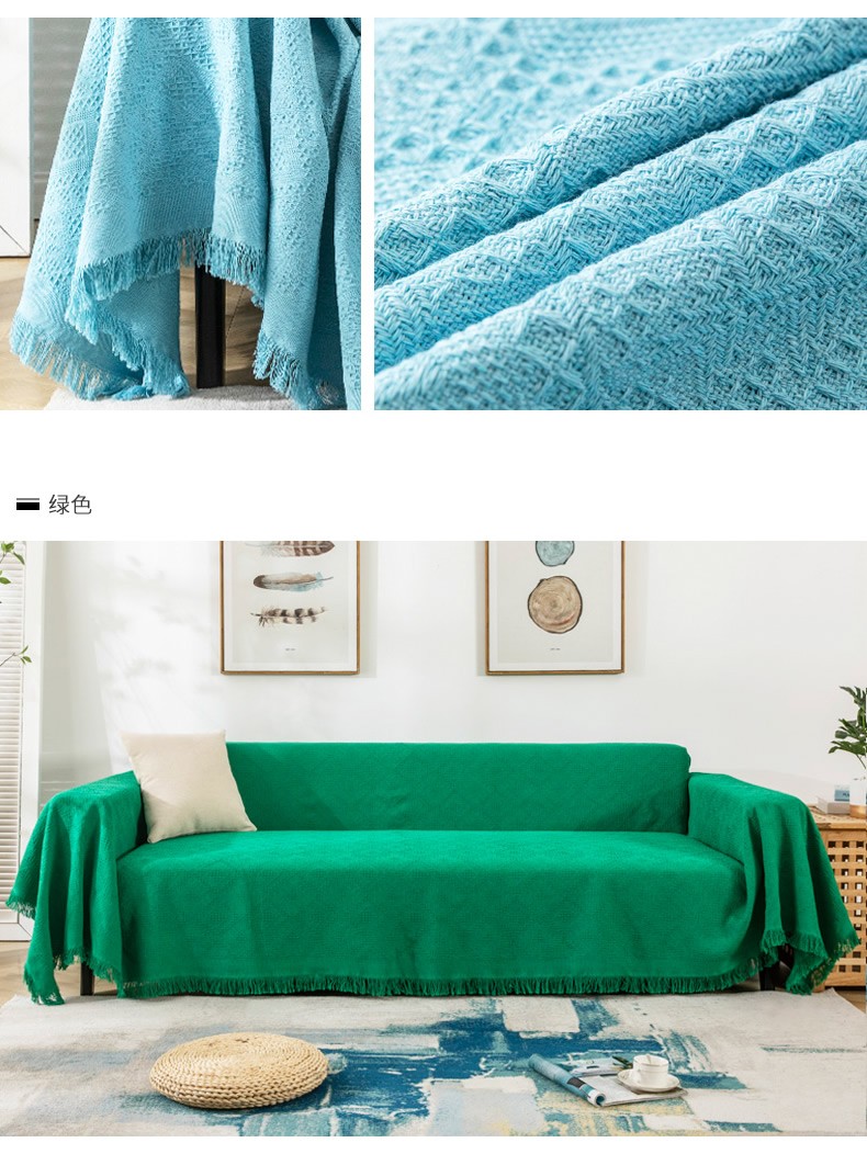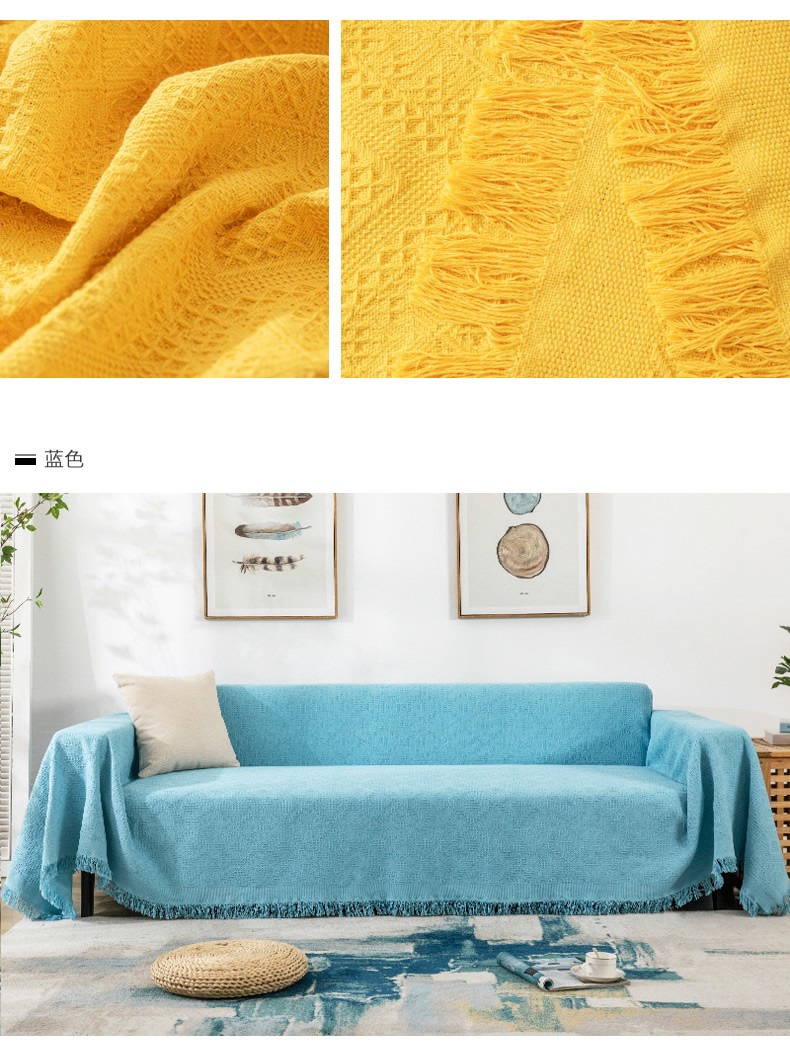 一生ソファタオルカバーソファクッション四季の毛布と綿の糸布芸ソファーカバー全カバー北欧クッション三人セットソファ貴妃式通用純色ダイヤモンドブルー180*230 cm【写真価格ブランド見積】