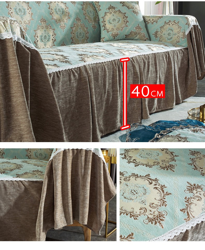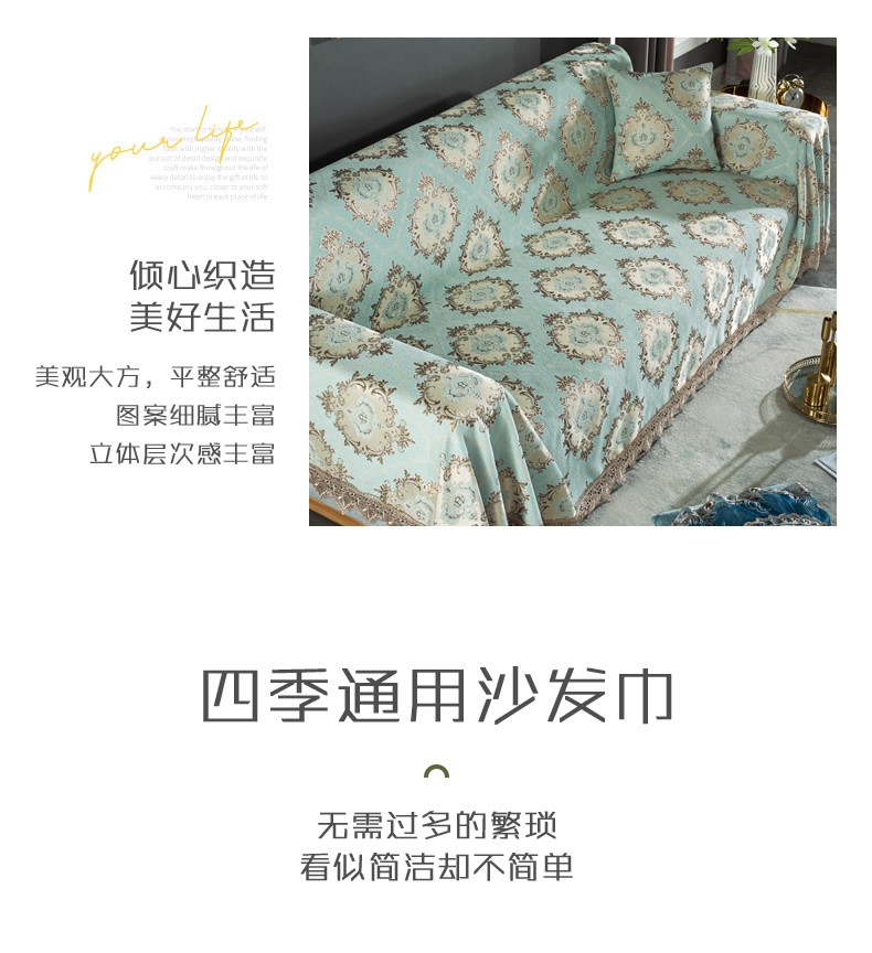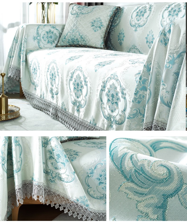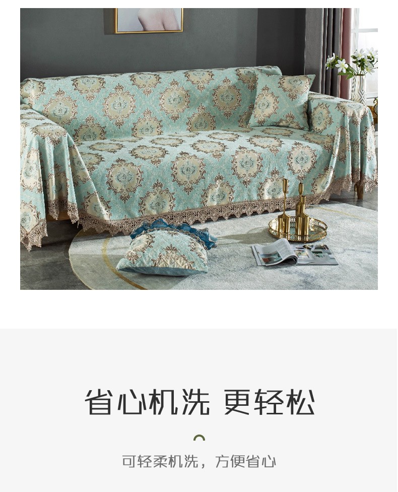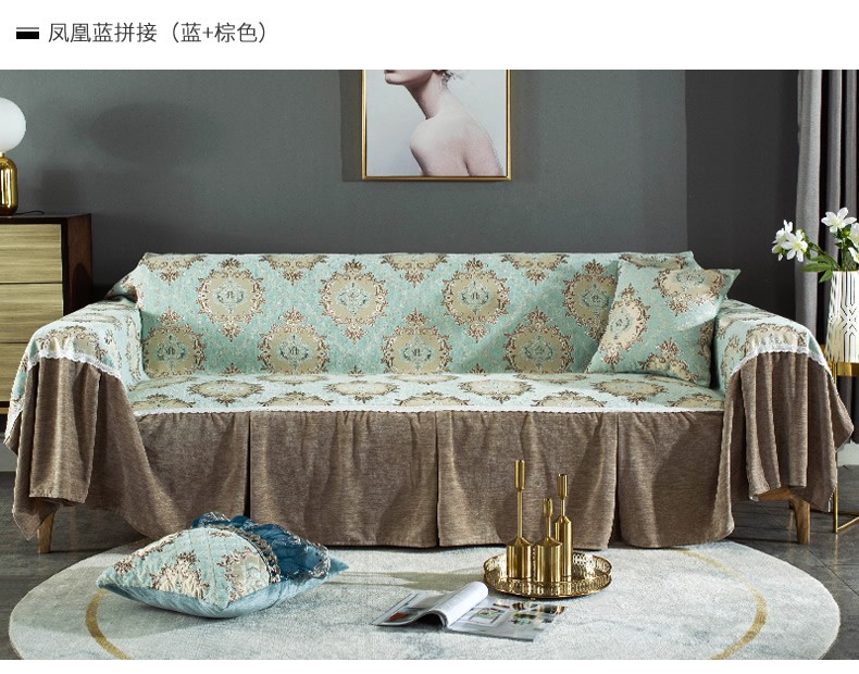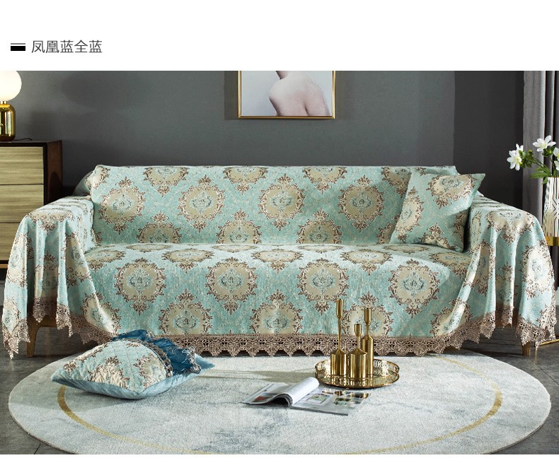 全カバーのソファーカバーが全カバーされています。全カバーのソファーマットは四季ジャカードのシニール一体式防塵毛布セットソファー123貴妃式のカバーはリンネルのように青い180*360 cmです。