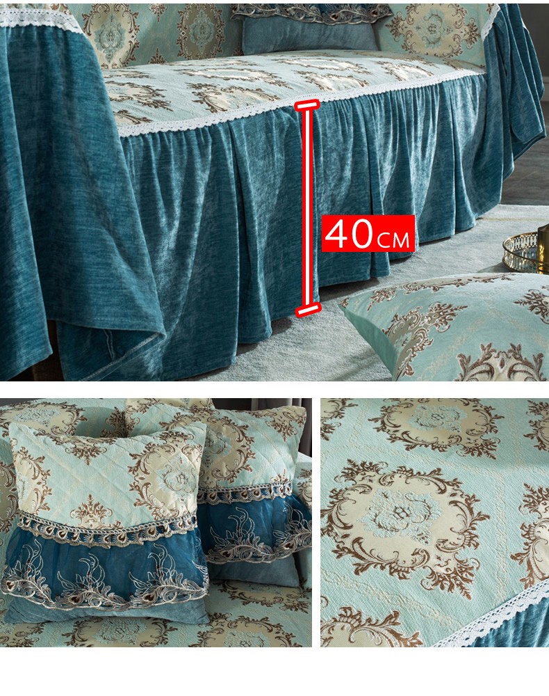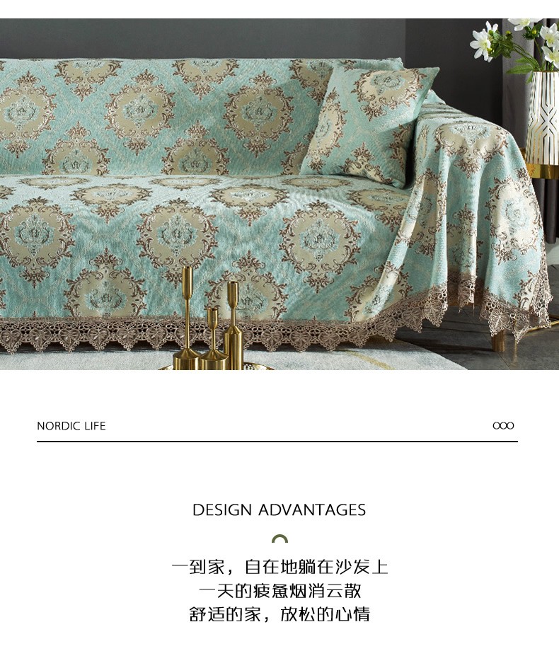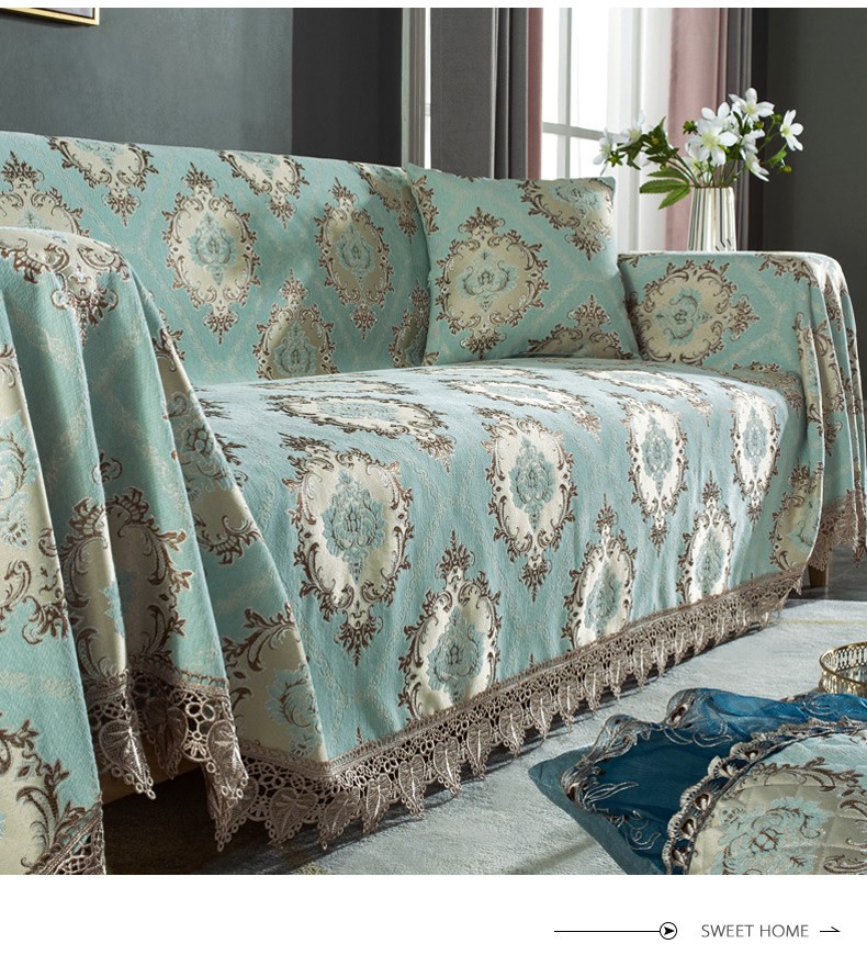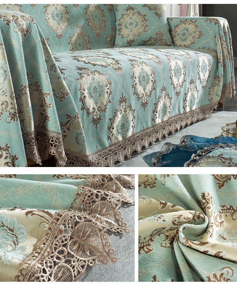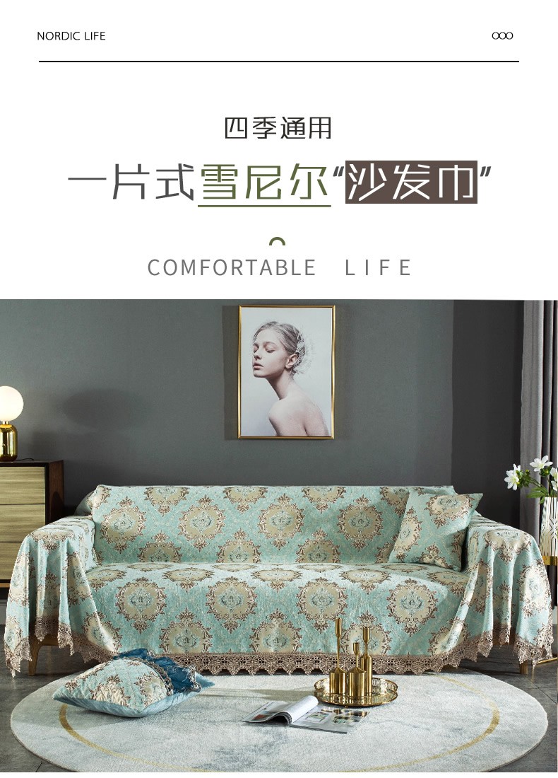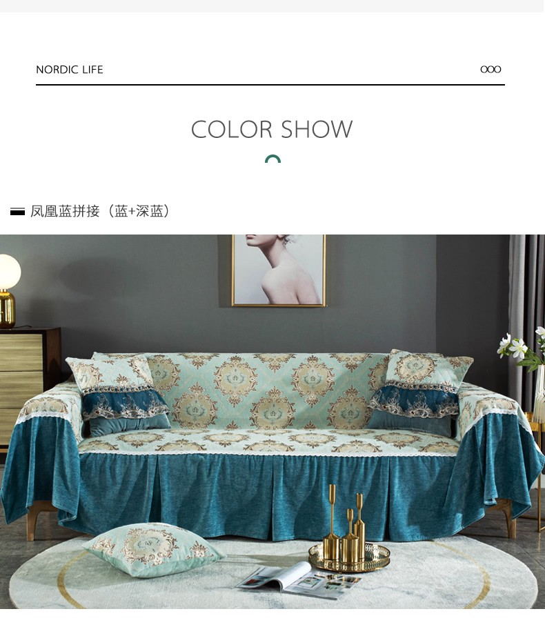 全カバーのソファーカバーが全カバーされています。全カバーのソファーマットは四季ジャカードのシニール一体式防塵毛布セットソファー123貴妃式のカバーはリンネルのように青い180*360 cmです。