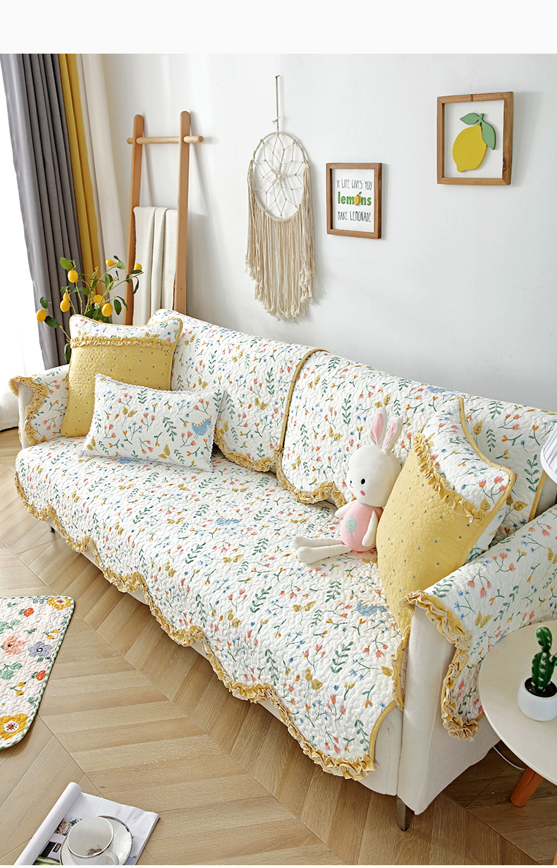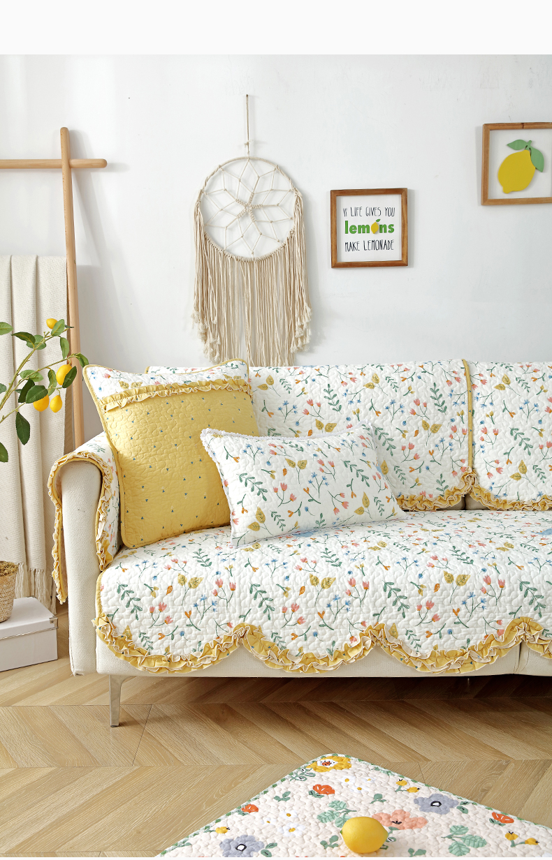蘭麗坊ソファクッション韓国式ファッション綿ソファクッション四季通用の田園布芸滑り止めクッション簡単に現代ソファカバーカバーカバーカバーカバーカバーカバーカバー付き窓クッション貴妃の席は黄色のバニラ幅90*長さ210 cm一枚カスタマイズできます。
