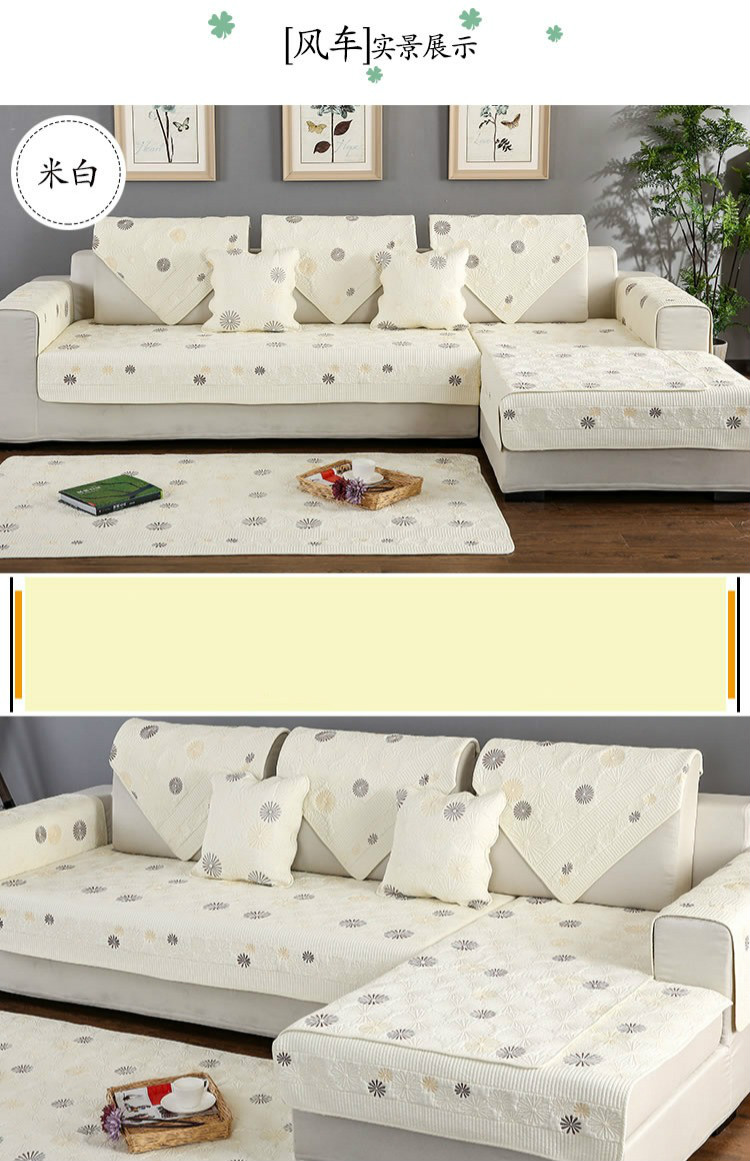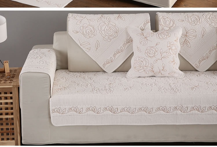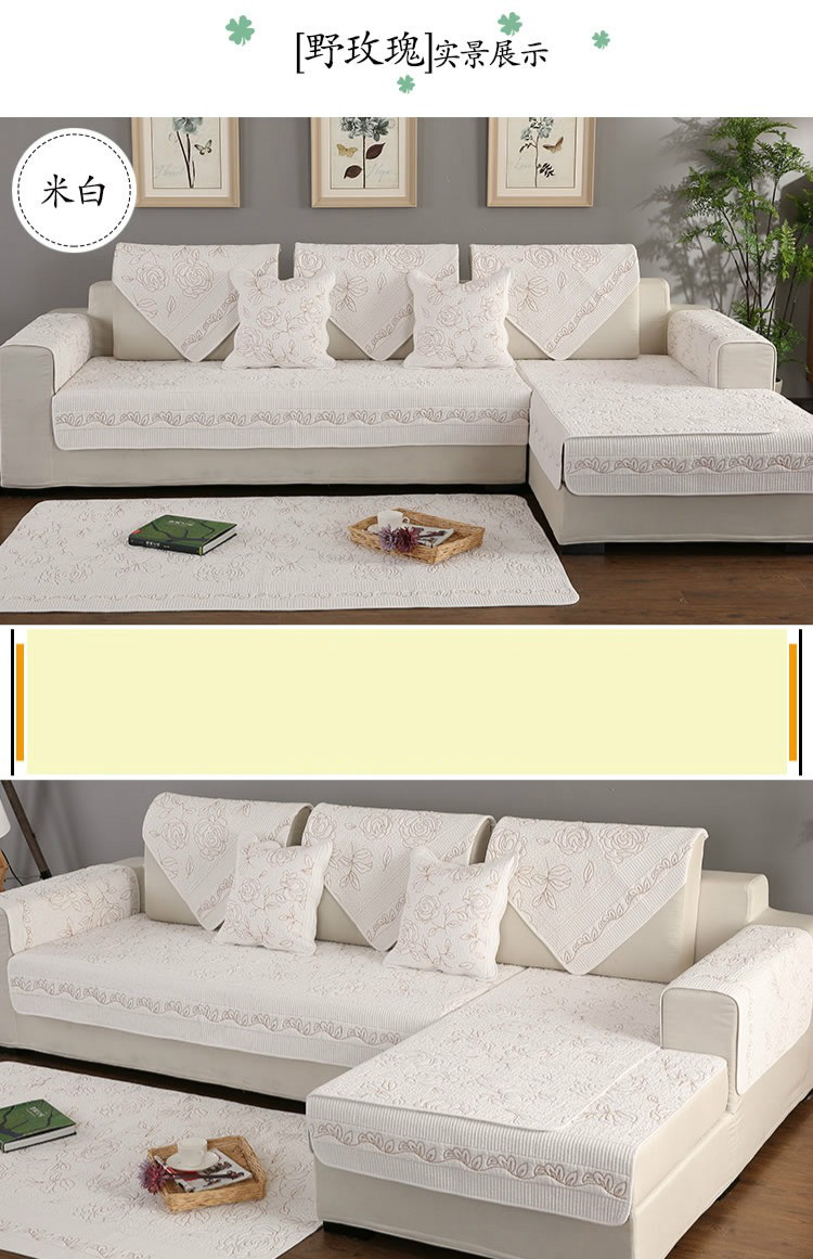 ペレスの両面刺繍ソファマット清新田園純綿滑り止めクッション全カバーソファーカバー全カバー貴妃セットソファタオルカバーZR月季米【正反対全綿】90*180 cm