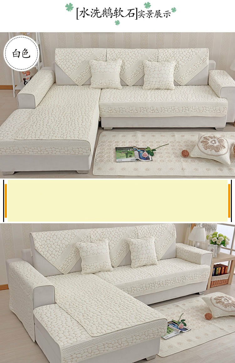 布芸ソファマット四季通用滑り止めカバーソファークッション現代ソファカバー白い水洗い玉石70*70 cm
