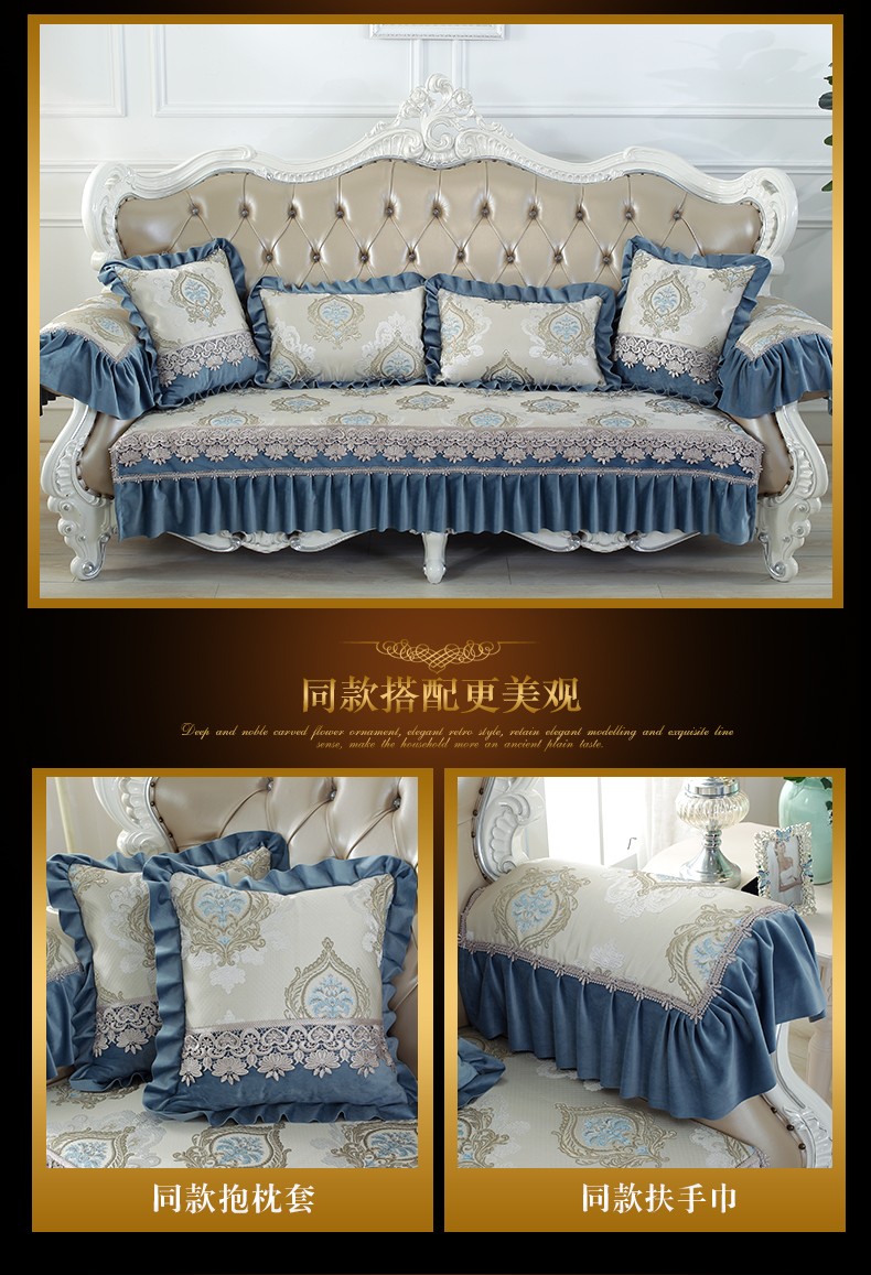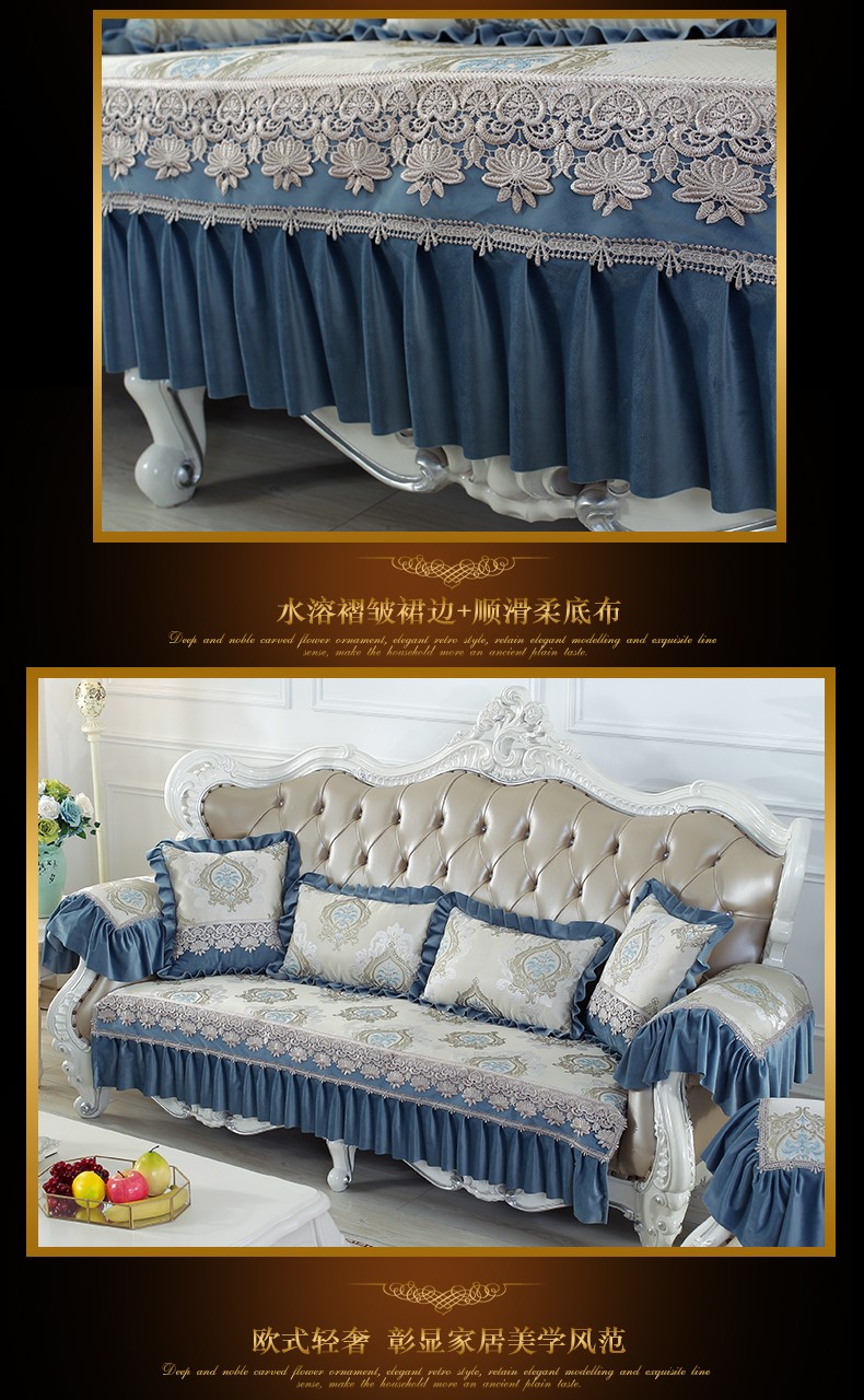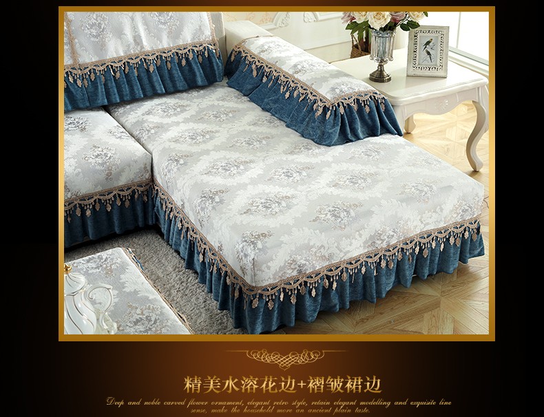 ソフィーナ欧式ソファマットセットシェニールソファタオル滑り止めソファクッション布芸四季ソファカバーL型貴妃カスタムg魅惑-青一枚(90+17 cmレース)*70 cm