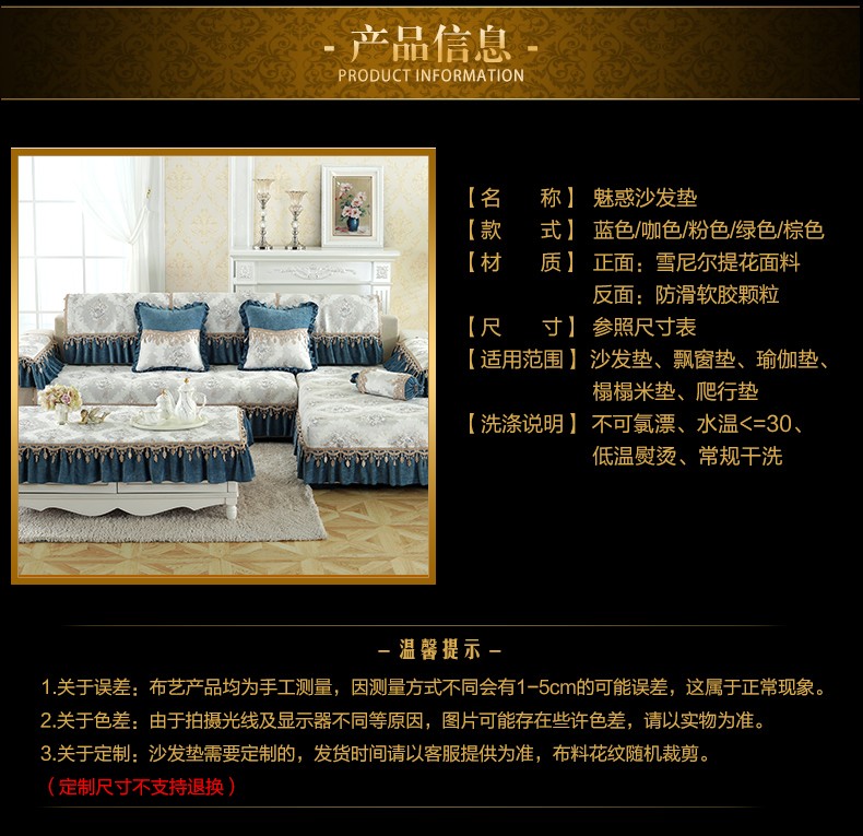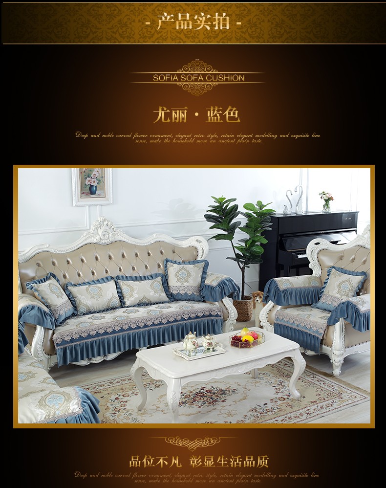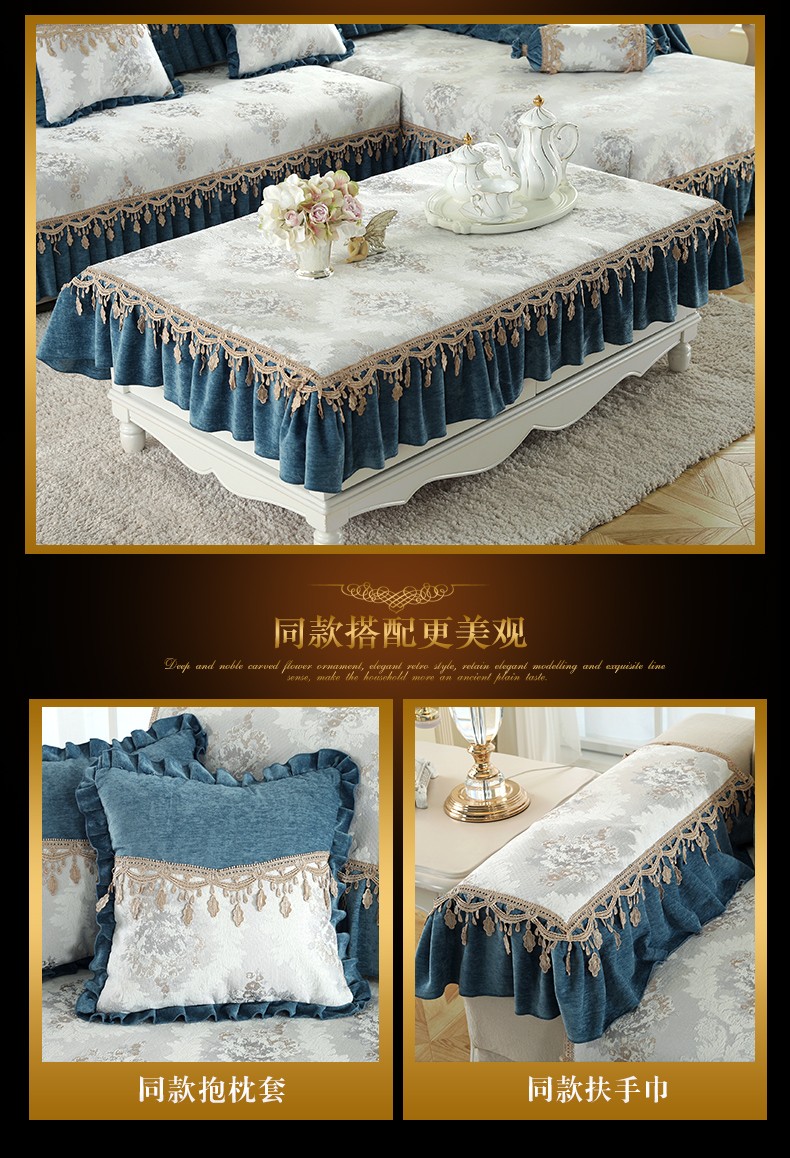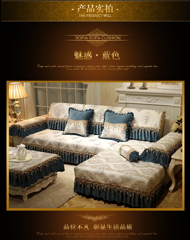 | 商品名称 | ソフィーナ欧風ソファマットセットシェニールソファタオル滑り止めソファクッション布芸四季ソファカバー全カバーL型貴妃カスタムg魅惑-青一枚(90+17 cmレース)*70 cm |