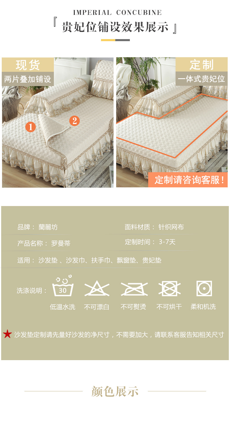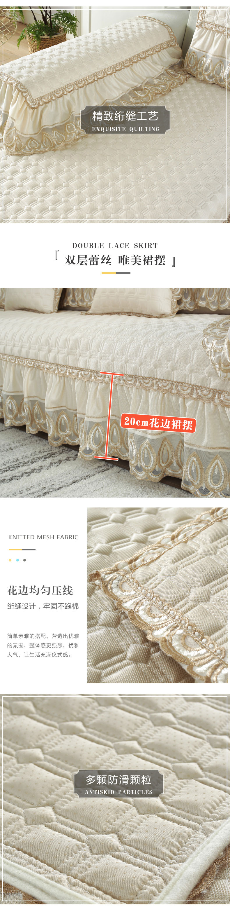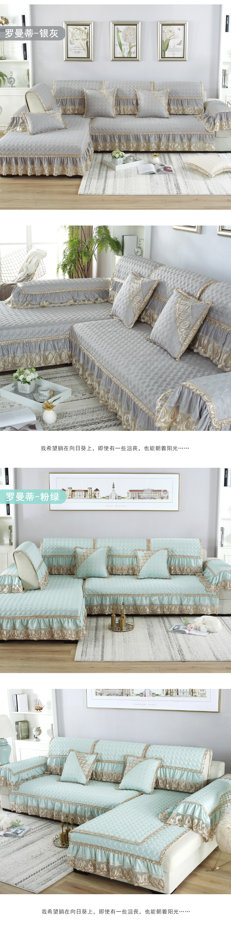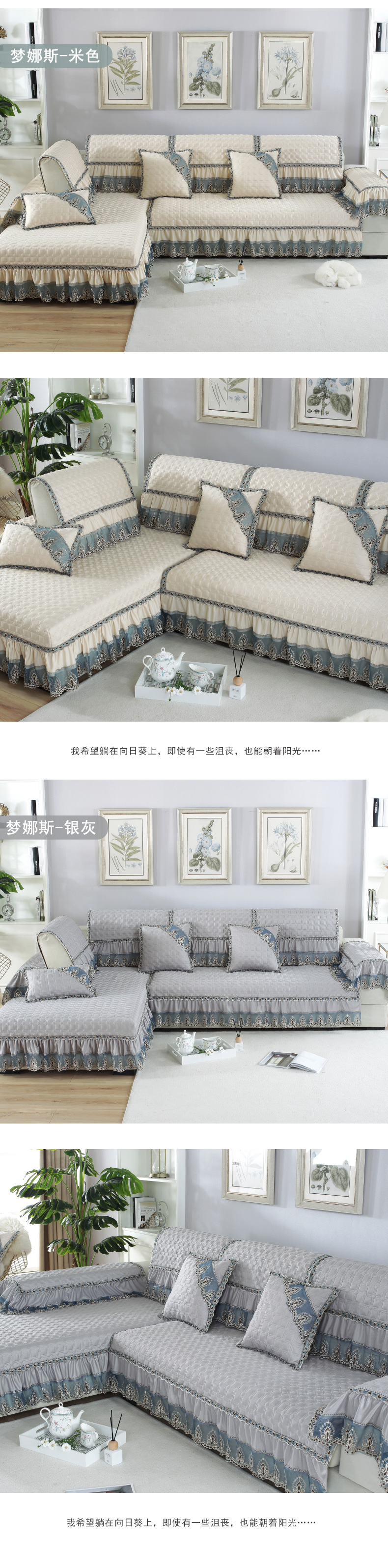 蘭麗坊ソファクッションセット欧風ファッション軽い贅沢クッションレースの裾の布芸ソファーカバー全カバー四季通用ソファタオル組み合わせソファカバー翻り窓マット貴妃位カスタマイズ可能ロマンティック-シルバーグレーは360ソファクッション+背もたれ+手すり(99%ソ...