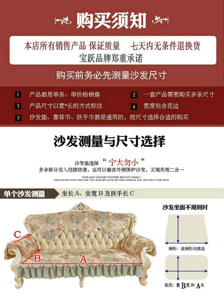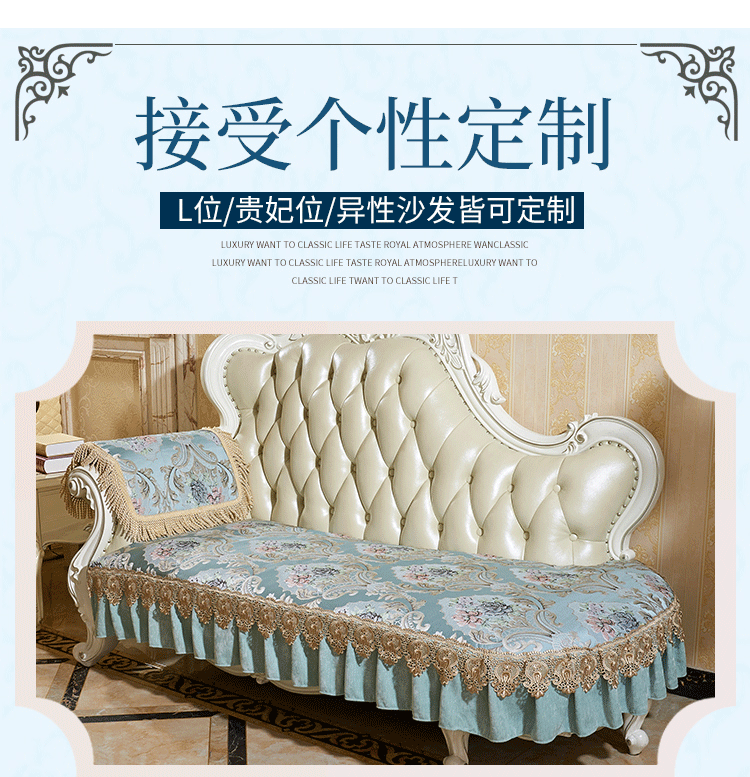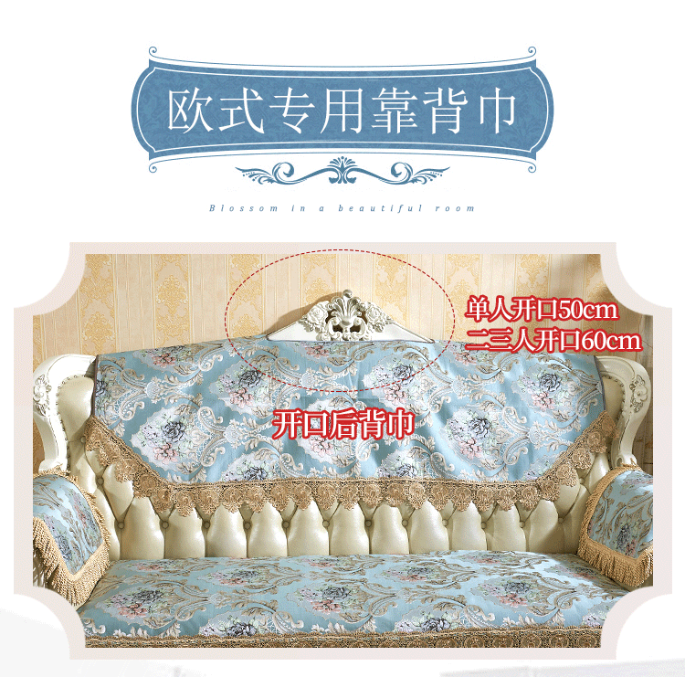 宝躍欧式ソファクッション布芸貴妃简欧123人セット四季通用の滑り止めカバー付きの滑り止めアメリカンソファカバーの全カバーの背中タオルのオーダーメイド欧リサ/雅藍背中巾80*120/開口部