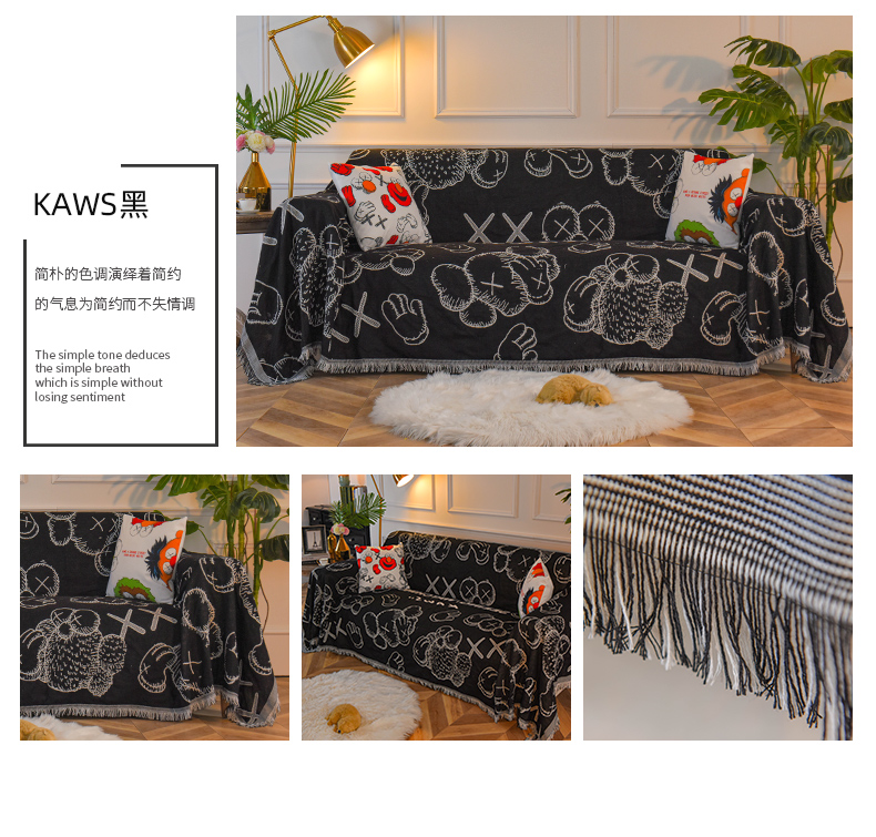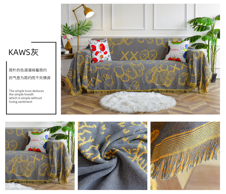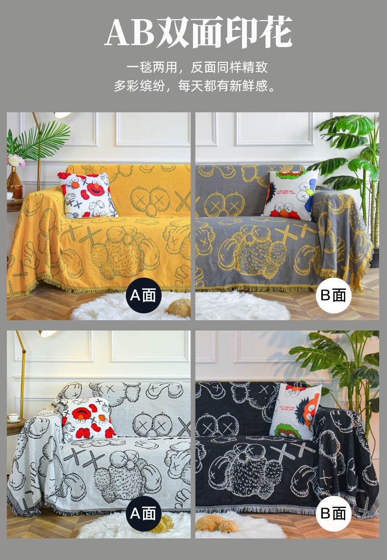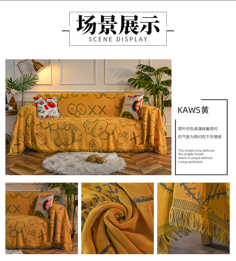 今後北欧ins風全カバーソファクッションアニメフリンジ両面カバー四季通用滑り止めカバーKAWS黄90*90 cm【写真価格ブランド見積】-
