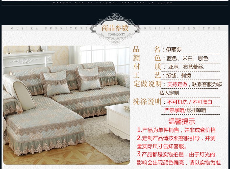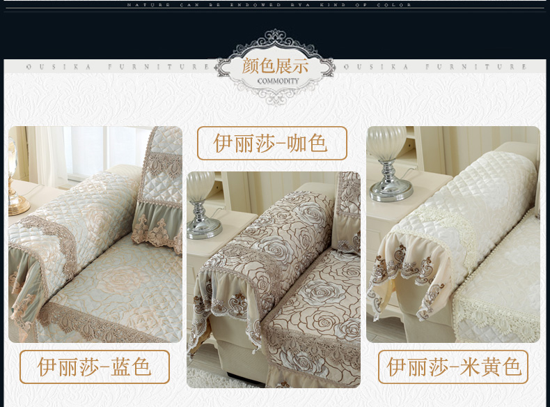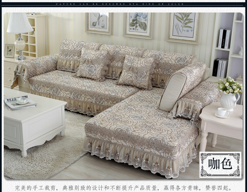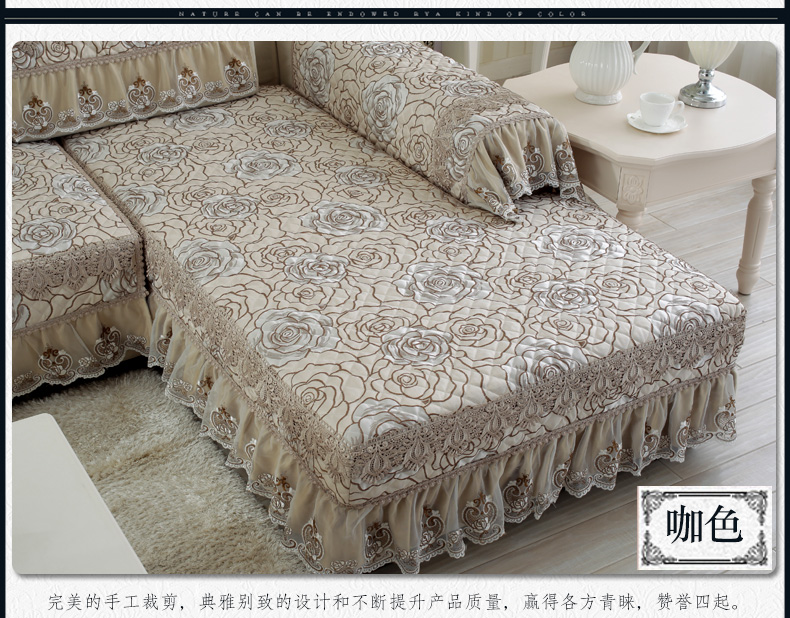 卡植欧(KZO)ソファカバー七字型四季通用布芸欧式ソファクッション刺繍簡単な現代貴妃フルバック型カバー伊莉莎-カレー色カスタマイズ特注価格改定が必要です。
