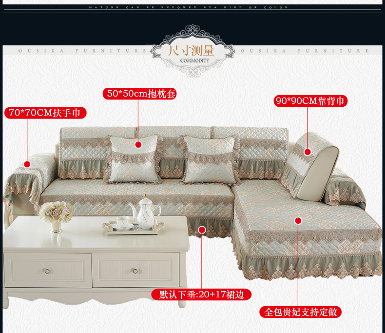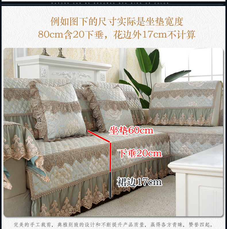 卡植欧(KZO)ソファカバー七字型四季通用布芸欧式ソファクッション刺繍簡単な現代貴妃フルバック型カバー伊莉莎-青オーダーメイド特別価格変更が必要です。