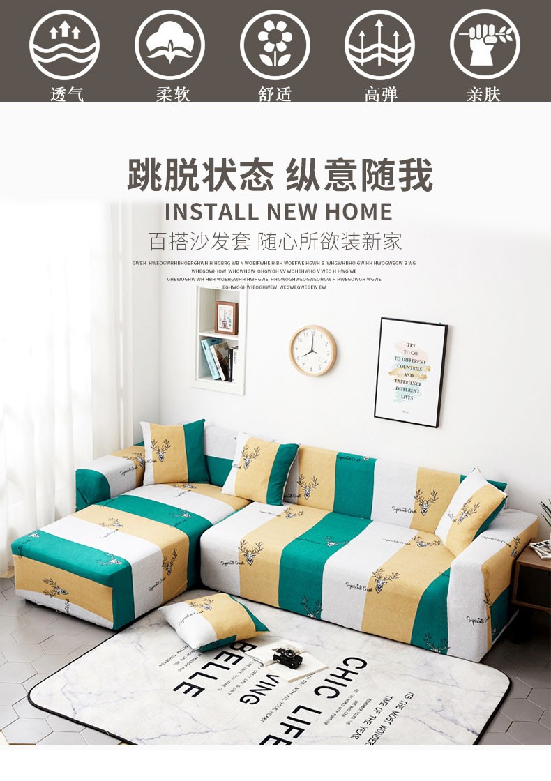 パブリックの弾力性のあるソファカバー全カバー万能ソファカバー四季通用のソファカバー夏滑り止め布芸全カバーソファーカバー印象派三人または貴妃位用(190~230 cm)単品
