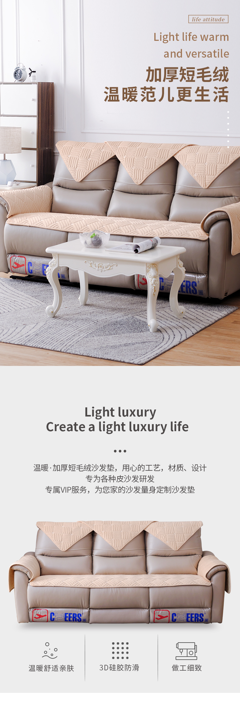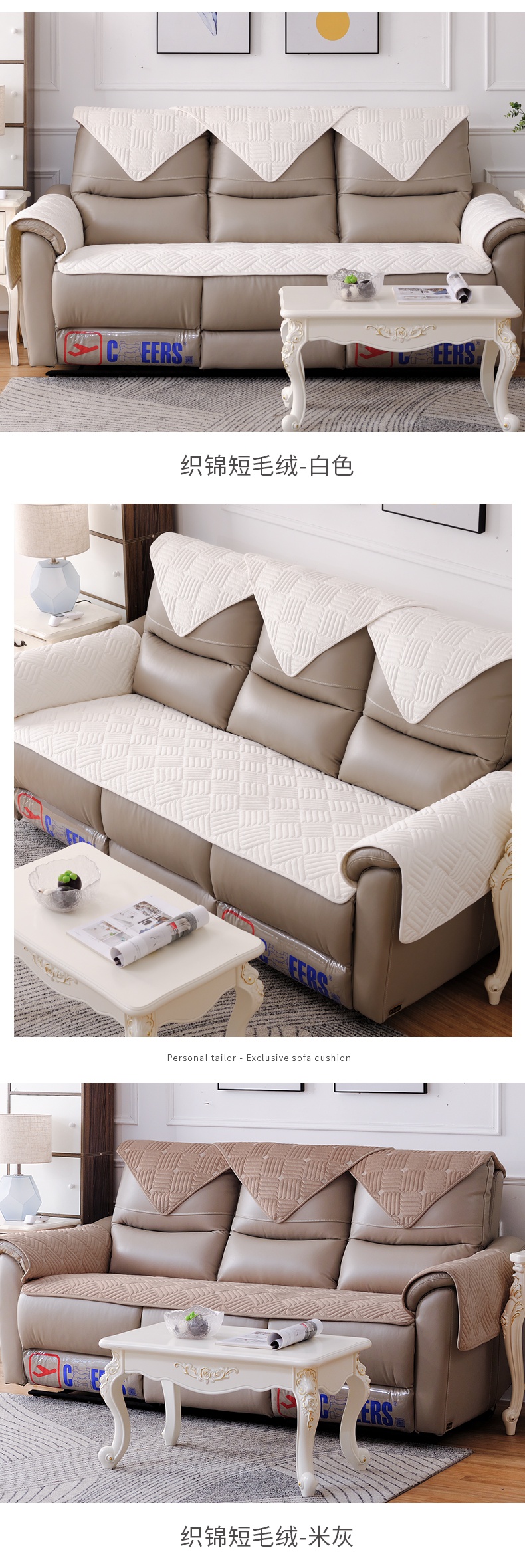琉臻芝華士三人のソファマット四季通用の滑り止めの通気性のあるソファクッション軽い贅沢な風です。冬毛绒ソファカバーカバーカバーカバーカバー錦織-米灰オーダーメイドL型貴妃一つ【写真価格ブランド見積】-