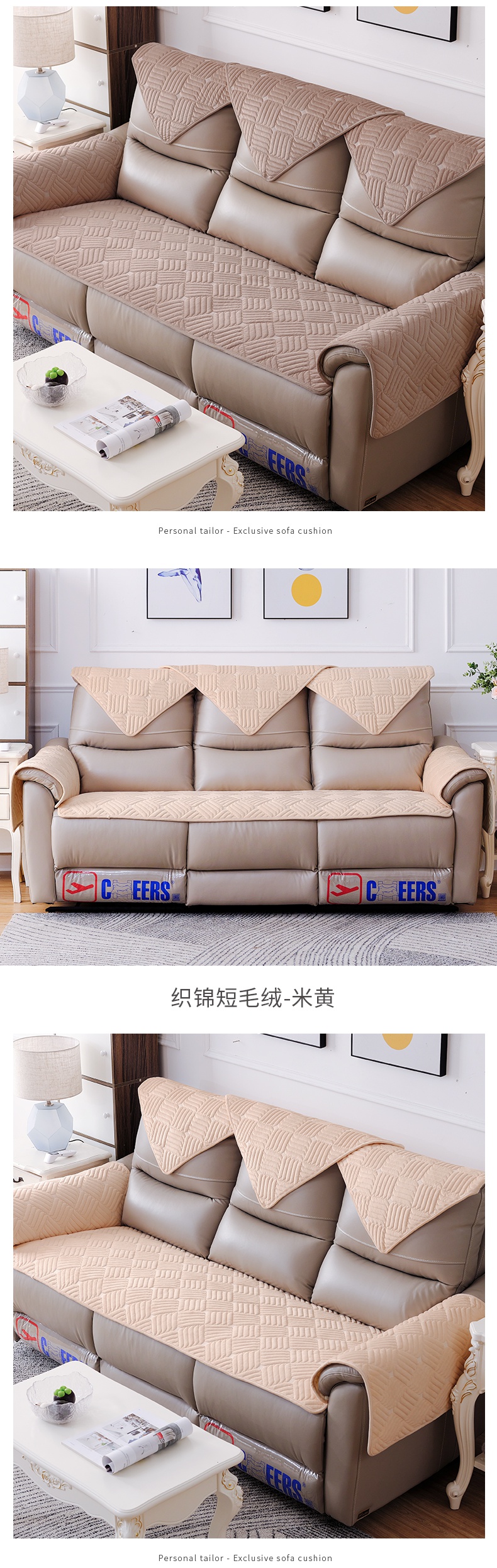 四季クッション通用ソファカバー付き滑り止めソファカバーカバーカバークッション現代新貴妃ベージュ【オーダーメイドサイズ連絡サービス】