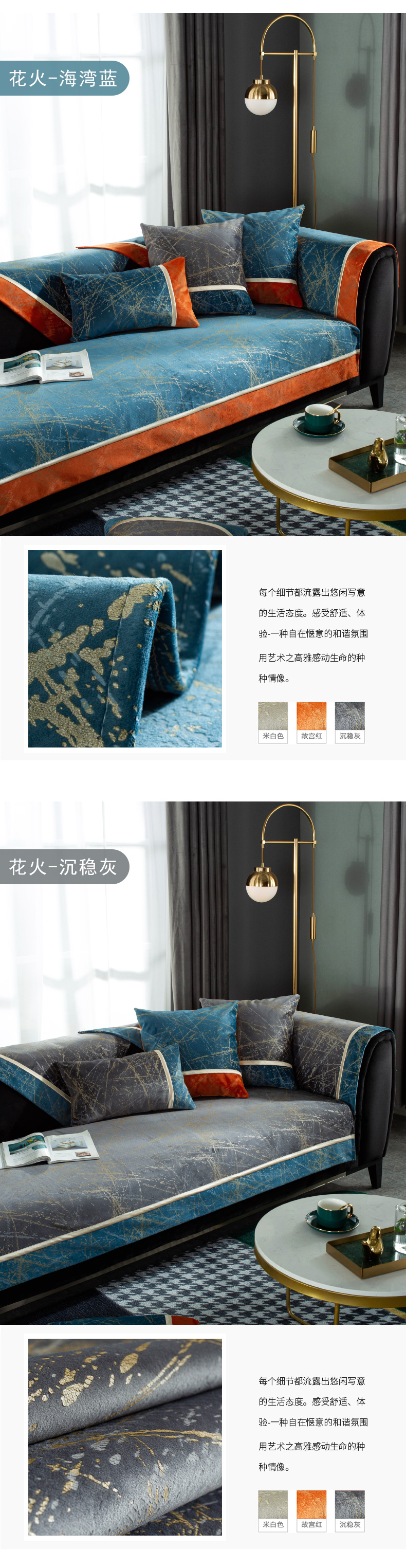 蘭麗坊ソファマット現代簡単で贅沢なソファカバー雪尼爾滑り止め布芸ソファーカバーカバーカバーカバーカバーカバーカバー付き万能ソファーカバー翻り窓クッション貴妃位カスタマイズできます。花火-落ち着いた灰幅70*長さ90 cm(手すりやクッションができます。)一枚