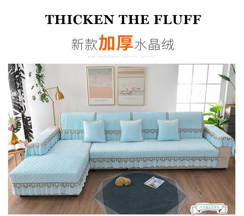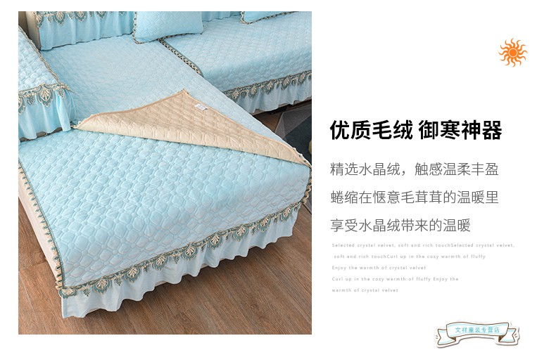 恒源祥ソファカバー夏欧式簡単現代水晶绒ソファマット厚いソファカバー北欧毛绒贵妃フルバック滑り止めソファカバー四点セット通用水晶絨毯浅绿90*210(四人乗り)シート