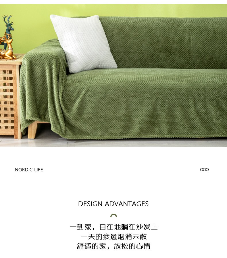 一生日本式ソファタオル全蓋布ソファカバー毛布布芸ソファーカバー全カバー厚い座布団リビングルーム三人セットソファー貴妃式通用純色コーンパイナップル軍グリーン200*200 cm