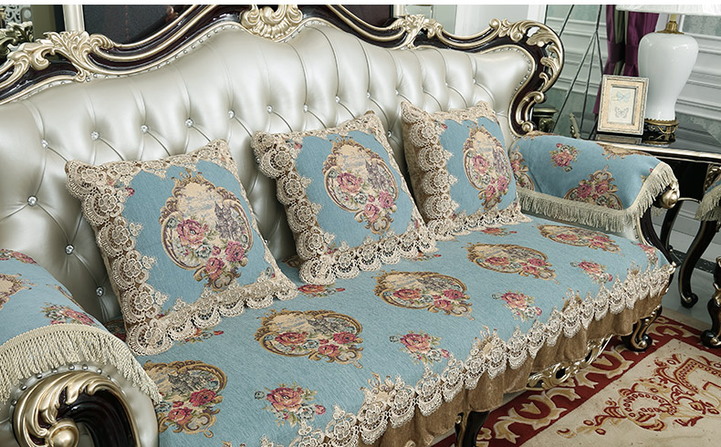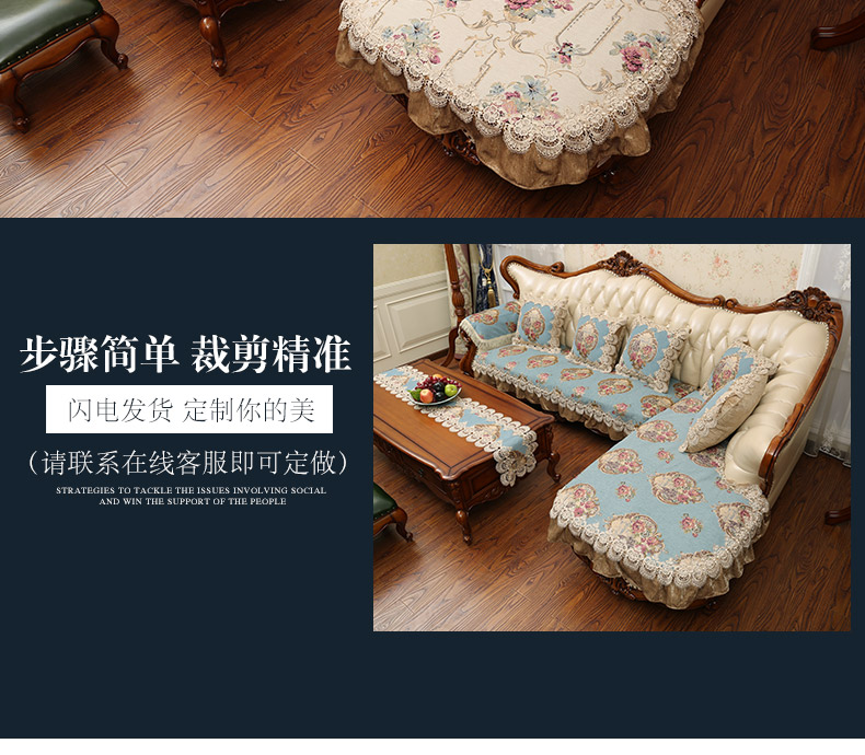 四季通用のオーダーメードの皮木布芸ソファカバークッション貴妃全カバー万能滑り止め北欧シンプル-海青片70*70 cm+17裾
