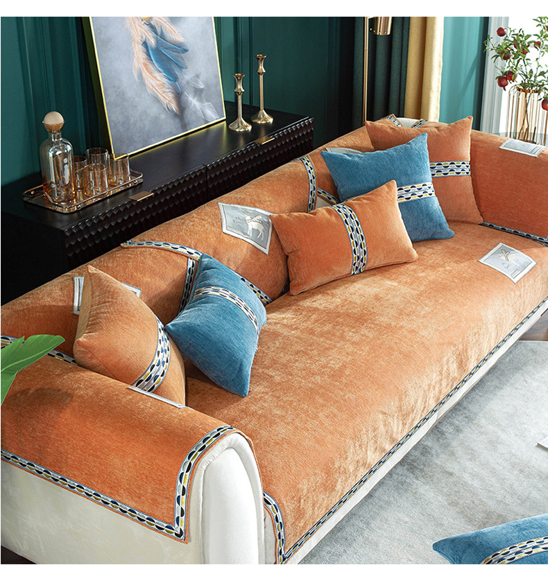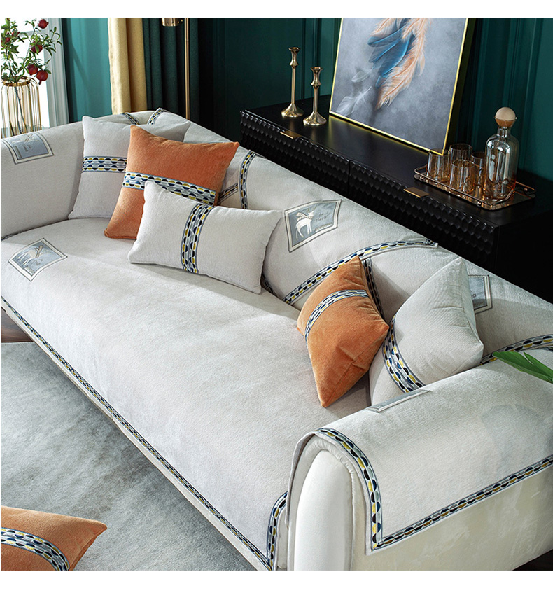 蘭麗坊のシニールのソファマット現代簡単で四季通用の滑り止めのソファーカバー北欧の木の皮のソファーはクッションの貴妃の席の翻る窓の敷き物に座って星をカスタマイズすることができます。パールの幅は90×長さは160 cmです。