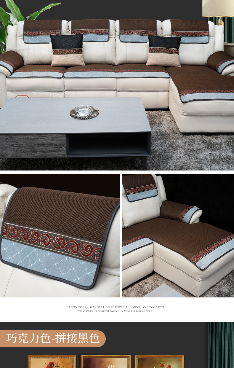 欣雨禾皮ソファマット夏は滑り止めマットセット布芸四季通用芝华仕頭简约現代123組ソファカバーオーダーメイドファーストクラス滑り止めマットチョコレート龙纹色带セットC単座+ダブルシート+貴妃パッド+手すりクッション9点セット