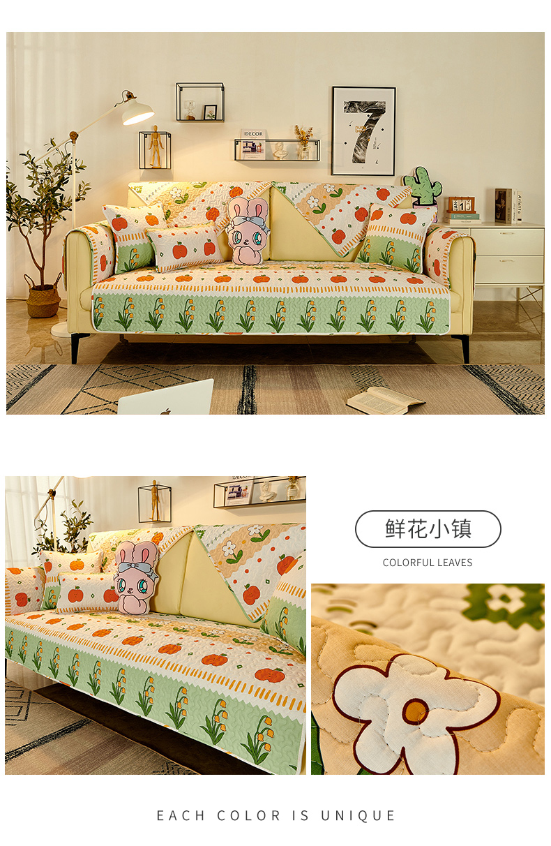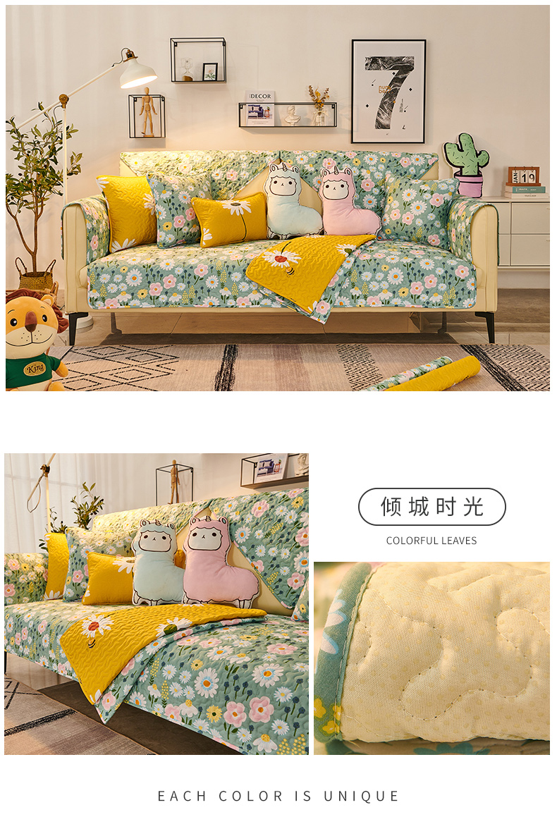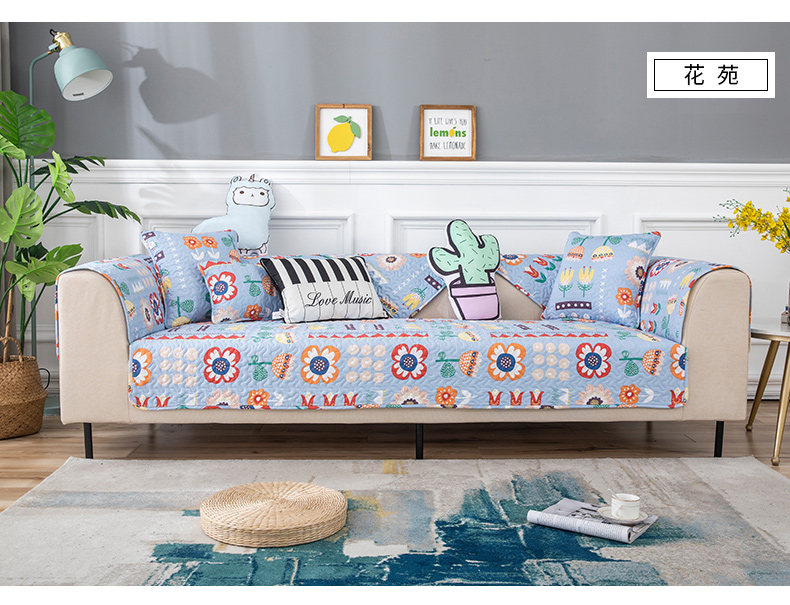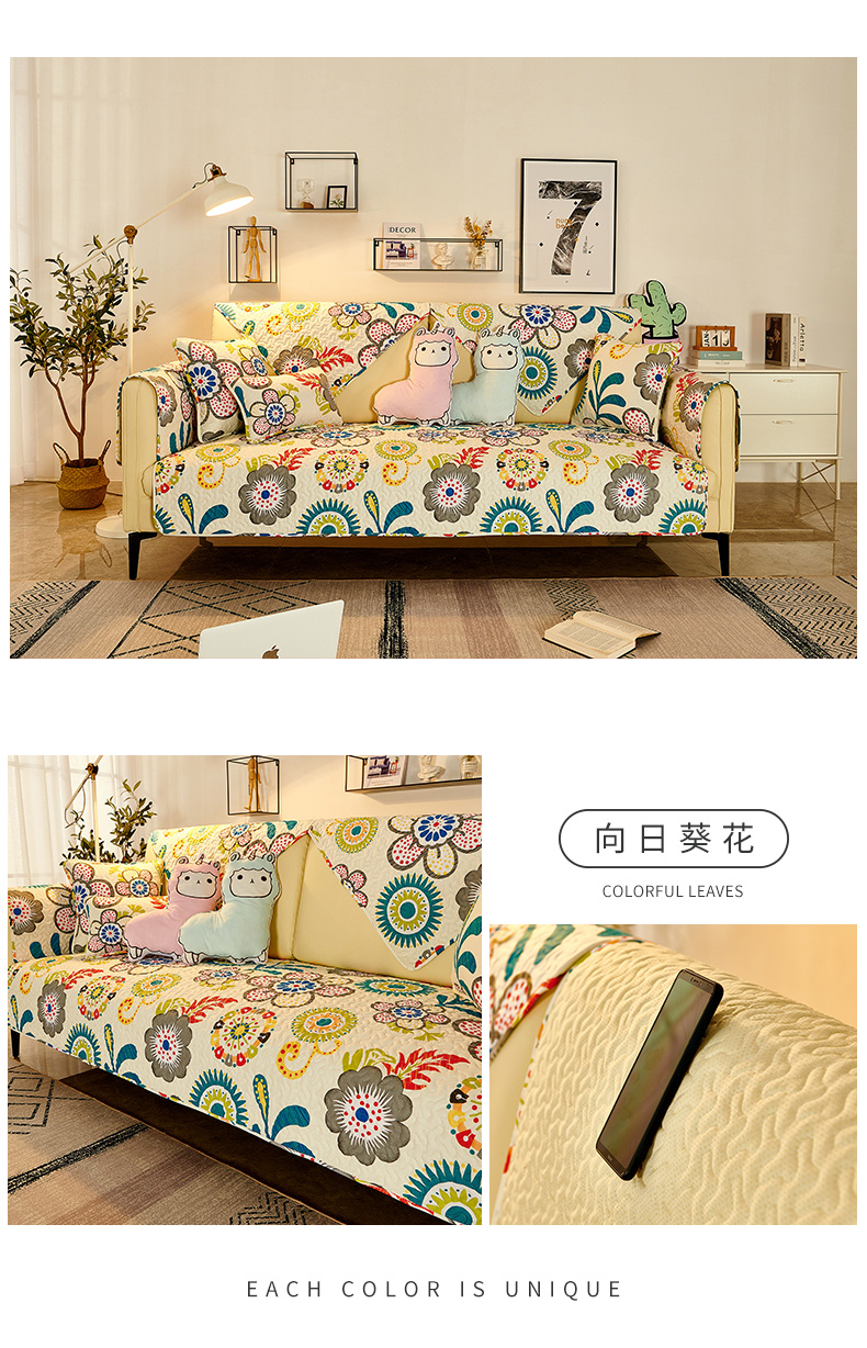 ペレスの両面刺繍ソファマット清新田園純綿滑り止めクッション全カバーソファカバー全カバー貴妃セットソファタオルカバーZR錦花米【表と裏の全綿】110*210 cm