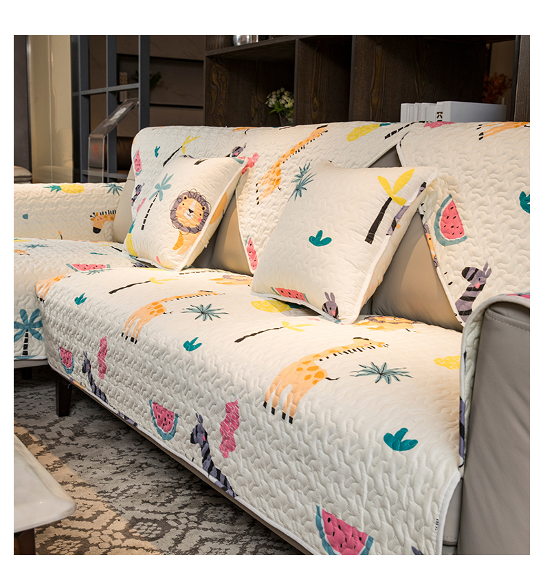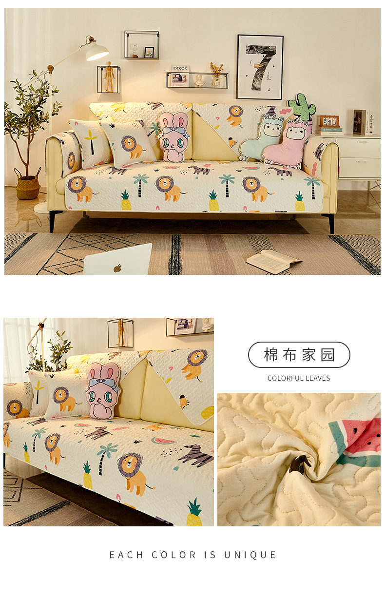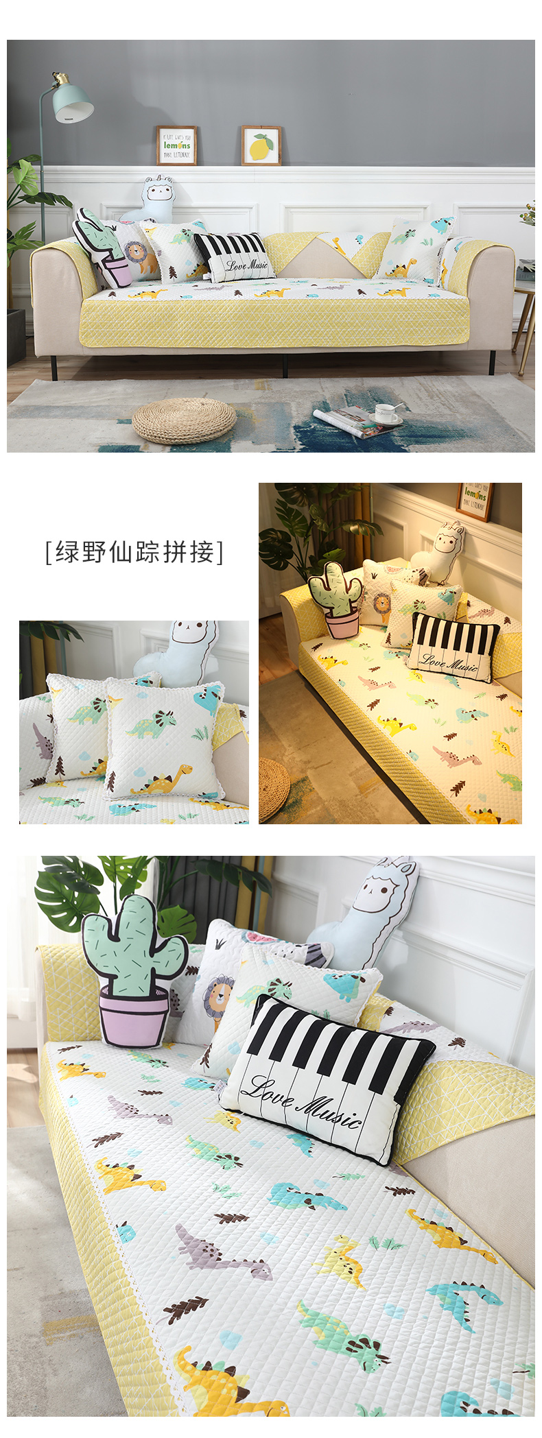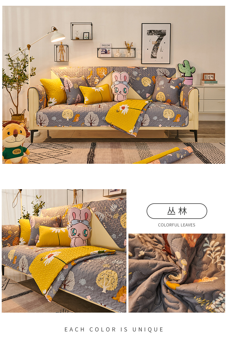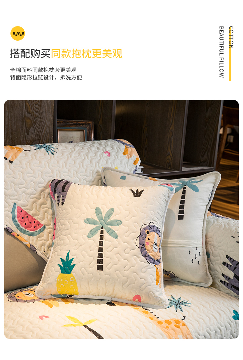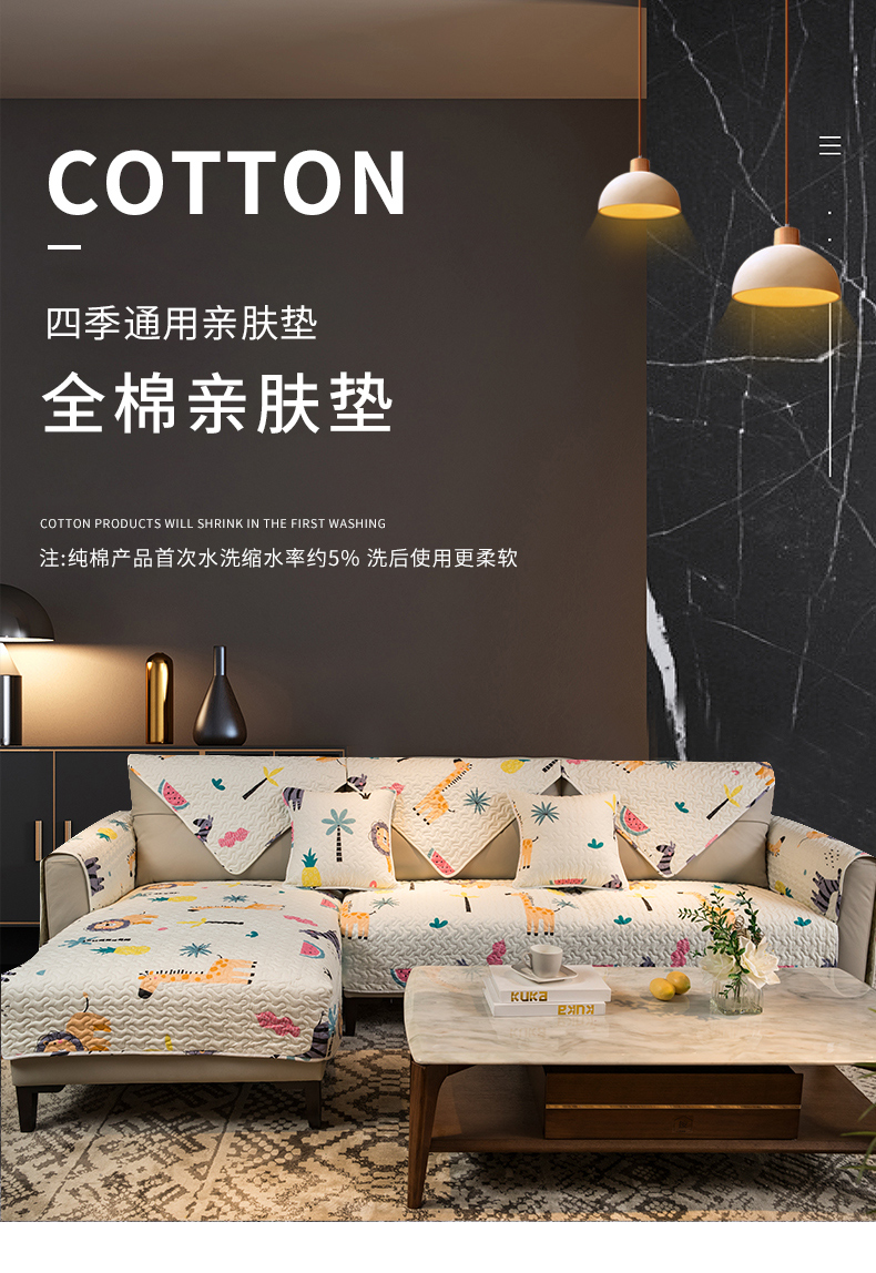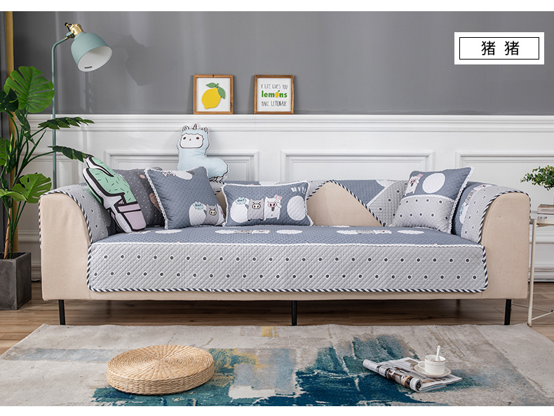 帰韻全綿ソファクッションセット布芸簡単現代客間四季通用の北欧純綿木綿三人がクッションに座って滑り止めカバーをします。