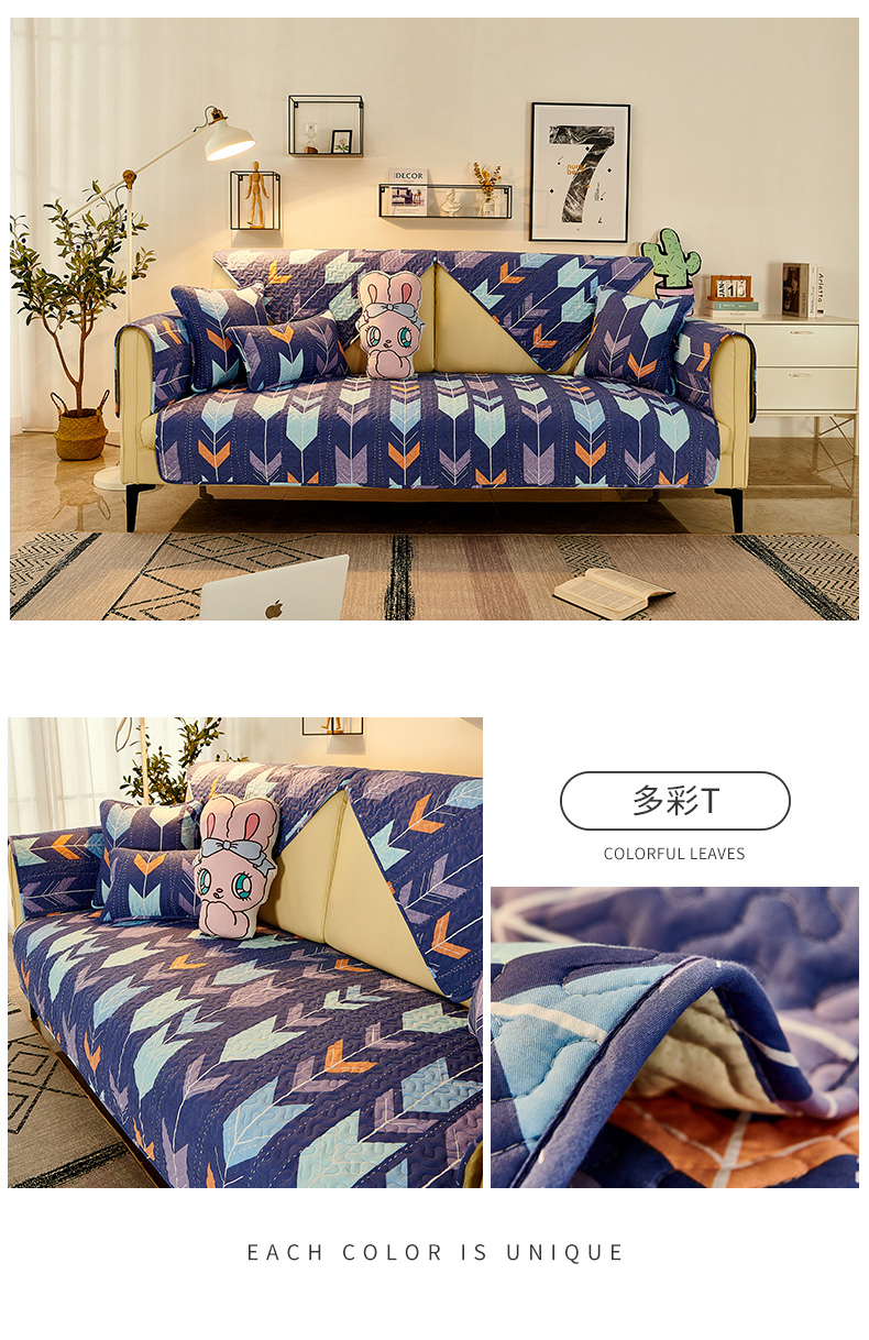 プレイボーイソファマット欧風シンプルで現代冬季クリスタルソファマット厚いソファカバー北欧冬毛绒贵妃フルバックソファカバー万能滑り止め水晶绒青灰90*210(4人乗り)