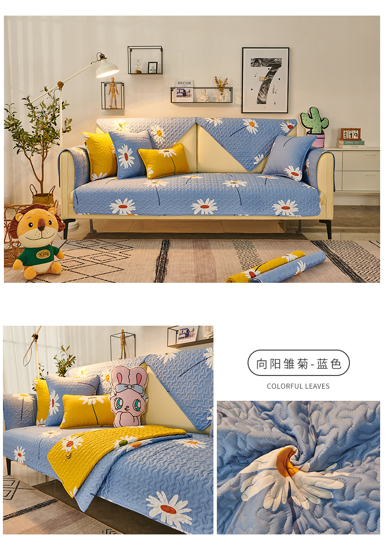 ペレスの両面刺繍ソファマット清新な田園純綿滑り止めクッション全カバーソファーカバー全カバー貴妃セットソファカバーZR雨荷-青【正反対全綿】70*70 cm