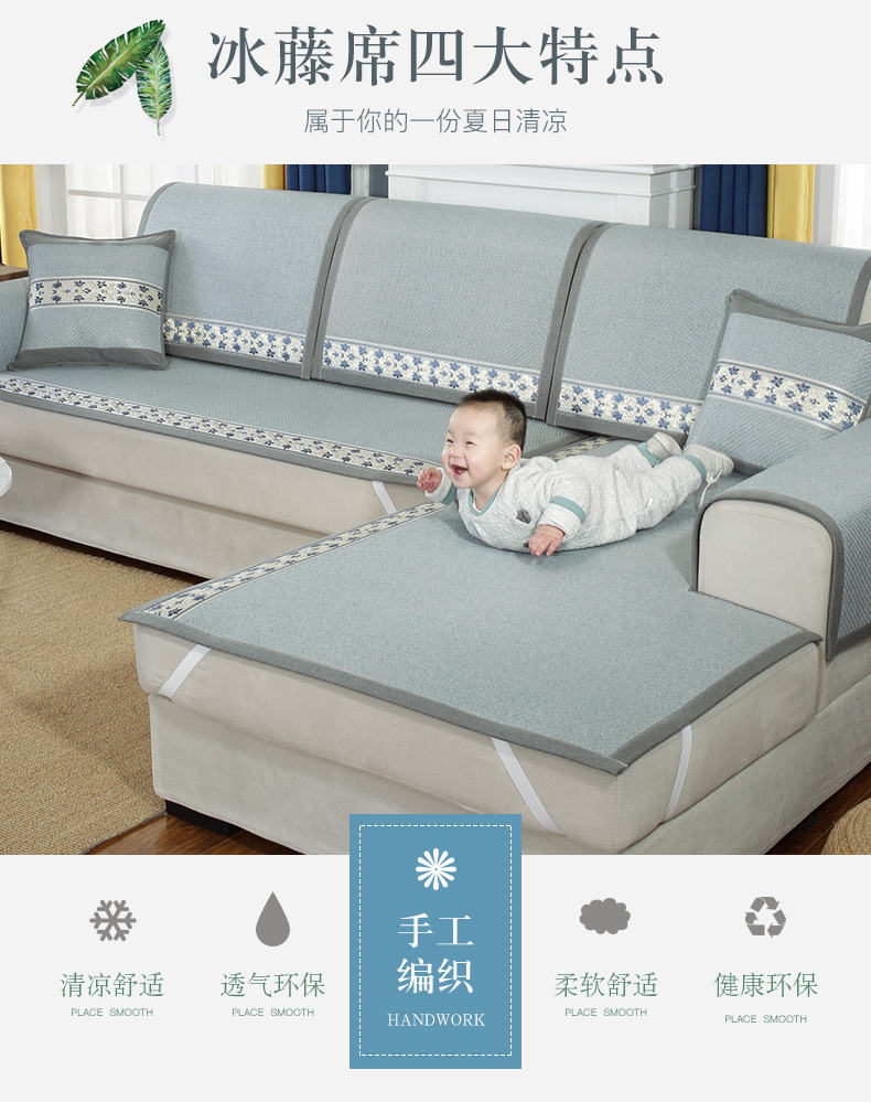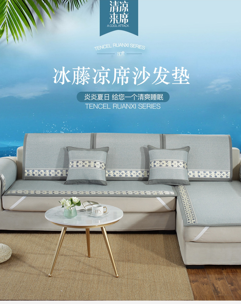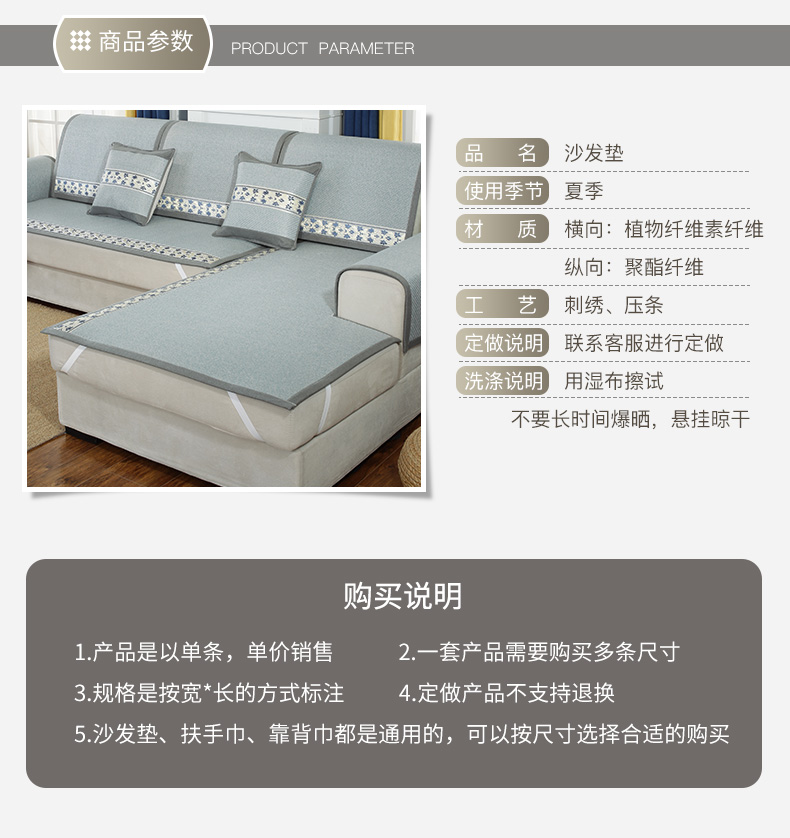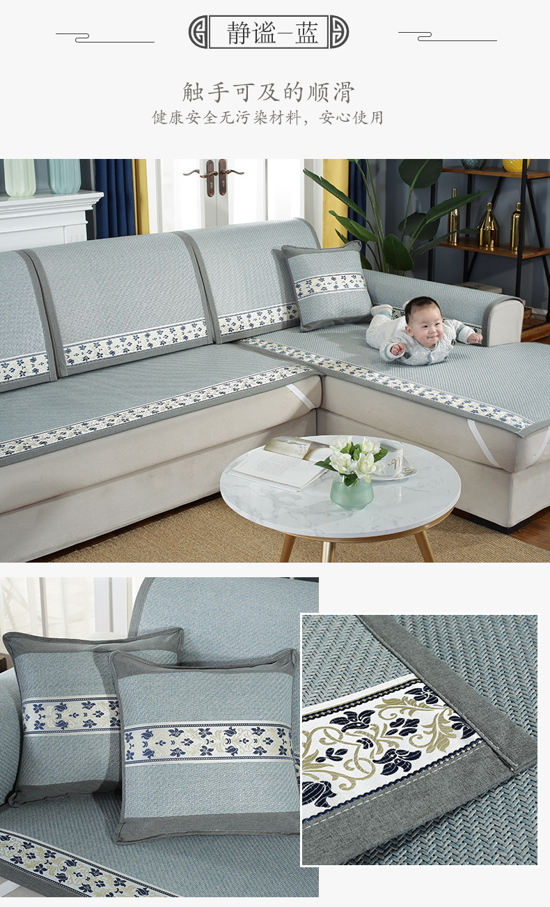 庄媛夏のソファマット夏の涼しい席のソファカバーカバーカバー全カバーカバーカバークッション夏の滑り止めセットカスタマイズy静谧-灰青(夏凉氷藤)70*70 cm一枚(オーダーメイド連絡サービス)