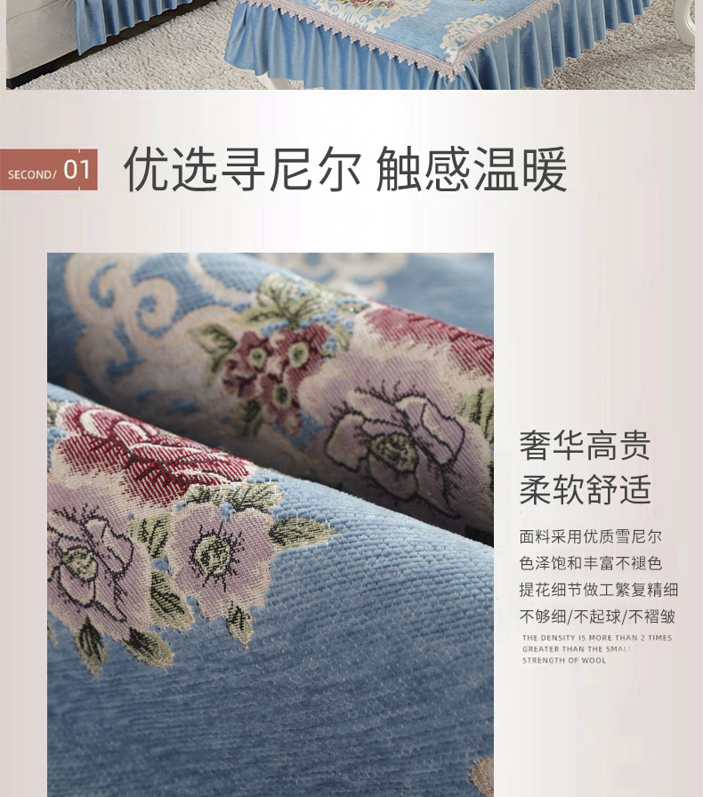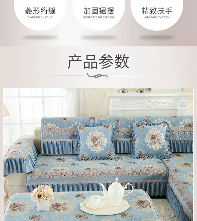 蘭麗坊ヨーロッパ式ソファマットセット滑り止めソファタオルレースのスカートのサイド布芸ソファーカバー全カバー四季通用のフルバックの貴妃席クッションは花好月円-浅藍70+18スカート*70 cm一枚をカスタマイズできます。