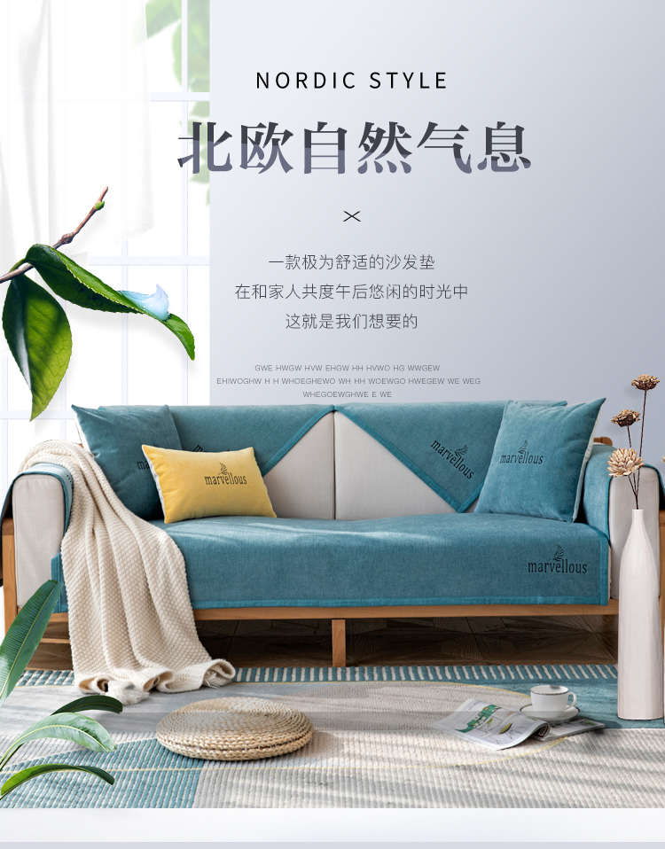 【布拉塔ソファカバー】布拉塔ソファマット北欧シンプル布芸ソファーカバー滑り止めソファカバー四季通用クッション空色90*160 cm【相場見積価格評定】