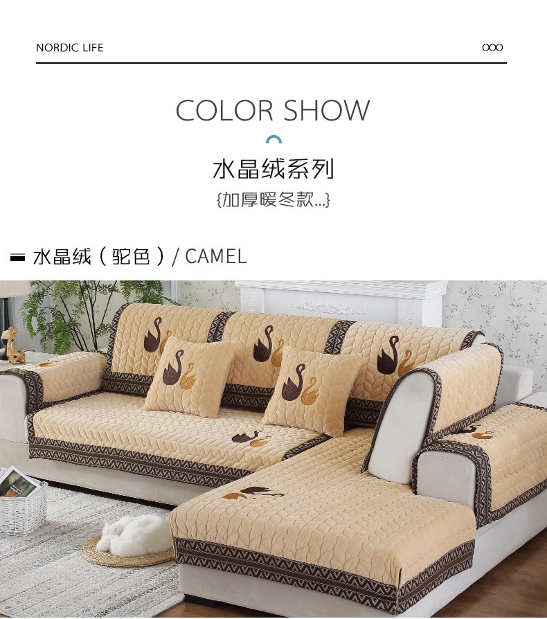 一生ソファマットスーツに厚いソファカバーを加えて、毛の絨毯クッションをカバーします。秋冬の布芸滑り止めソファタオルカバーをして、純色の新しい中国式三人の組み合わせで、木のソファ通用水晶の絨毯の白鸟シンプルな辺ラクダ色のソファマットをカスタマイズして、...
