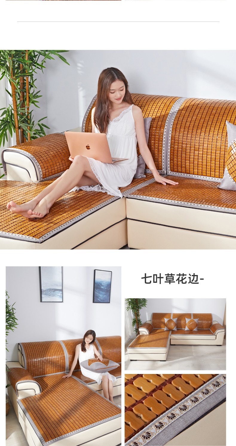 雅怡欣夏季麻雀席ソファマット貴妃氷糸クッションカバー夏スタイル客間ソファソファ席滑り止めマット竹席冷クッションオーダーメイド七葉草レース【双筋】80 x 150