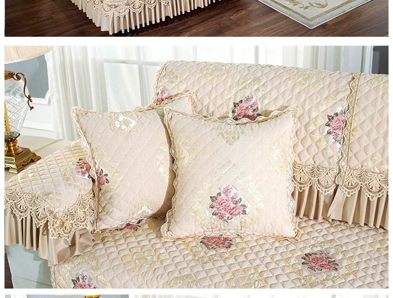 | 商品名称 | 菲梵閣ソファクッションセット布芸カスタマイズ実木セットカバーカバーカバーカバー四季通用クッション夢じんましん-ベージュ70*70 CM+15 cmスカートが並べられています。 |