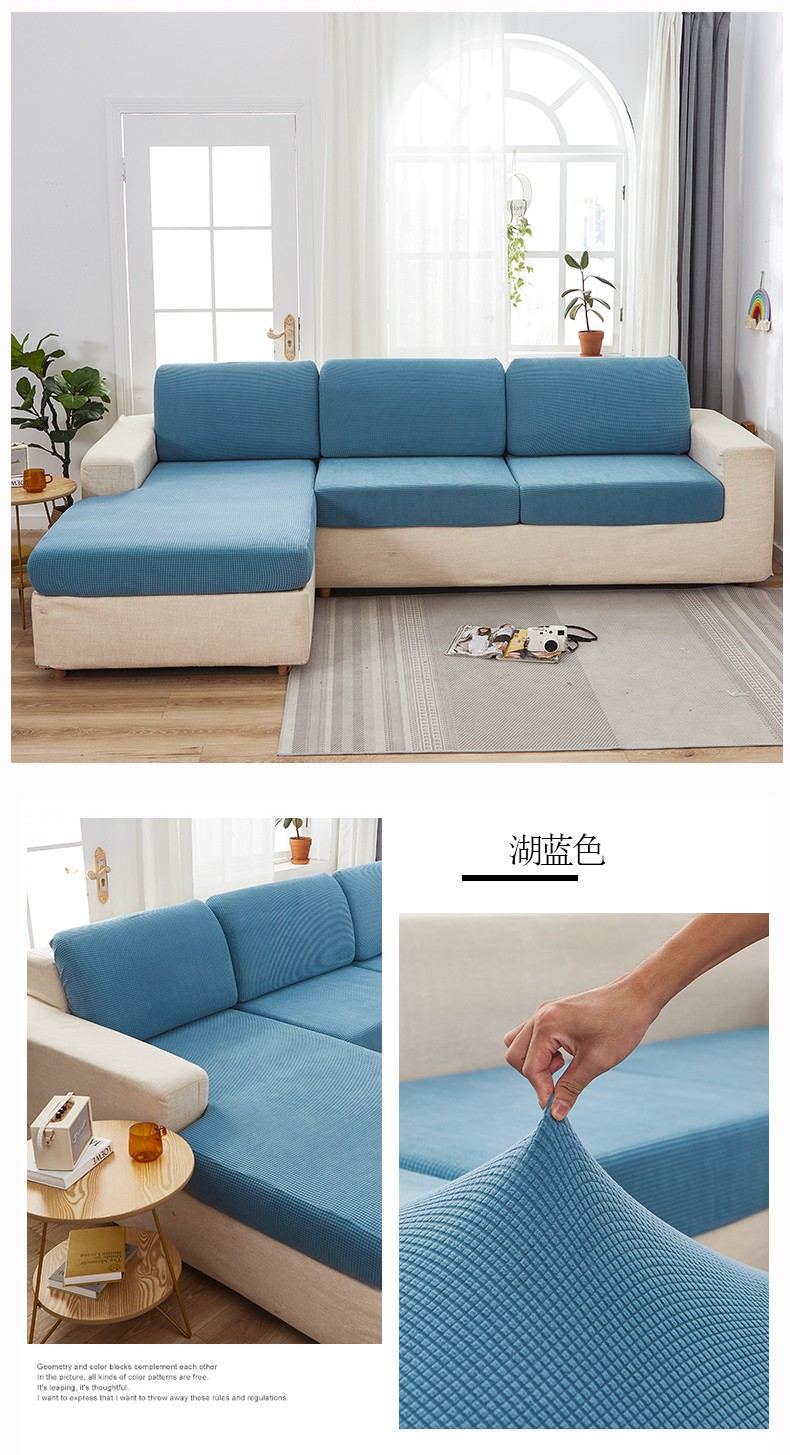 夢の中で花が生い茂る弾力性のクッションカバーは厚い純色の実木のソファーのスポンジカバーの半包みのソファーの笠の単双三人の貴妃の組合せは湖の青い大きい単人をかぶせます:長い65-95の幅の65-95 cm